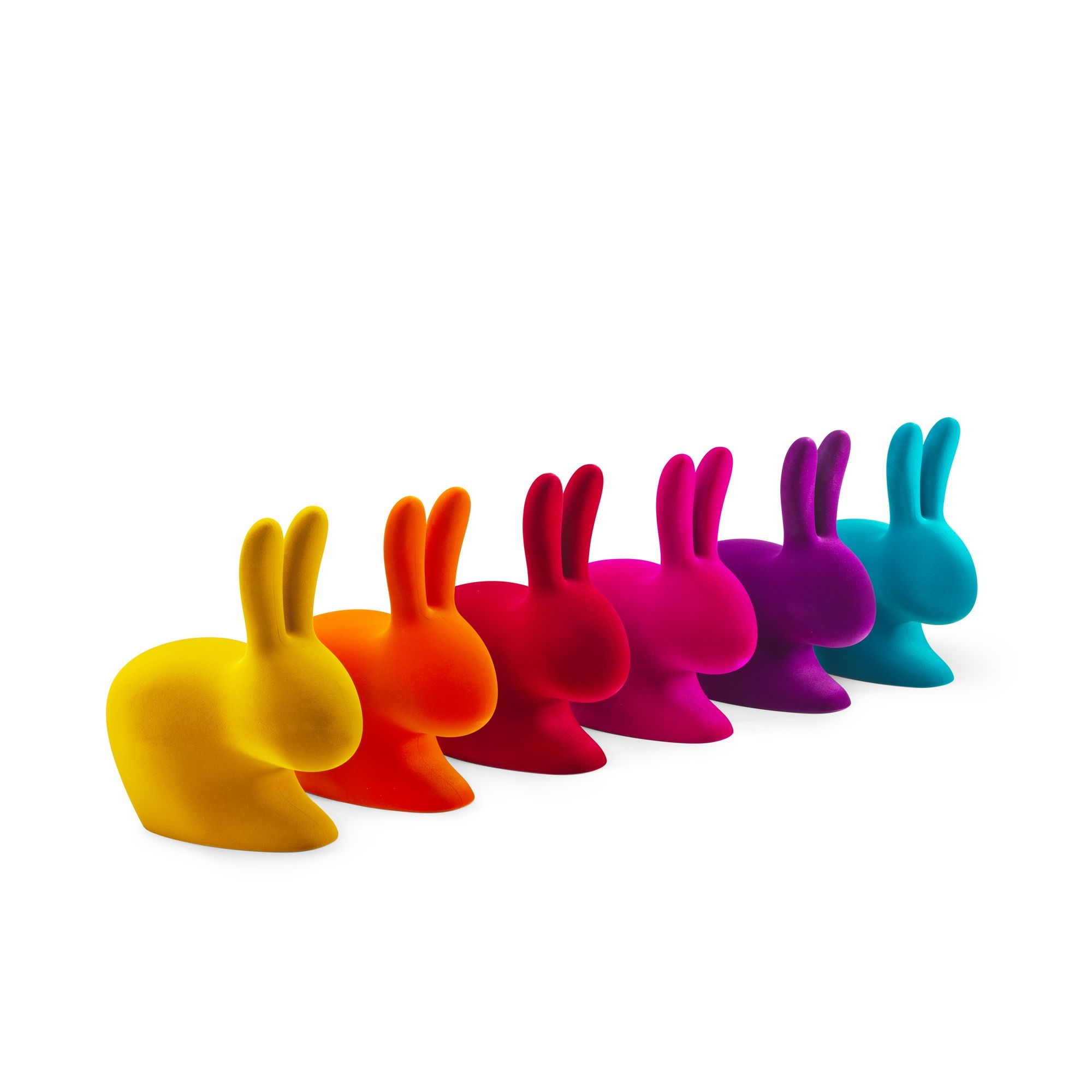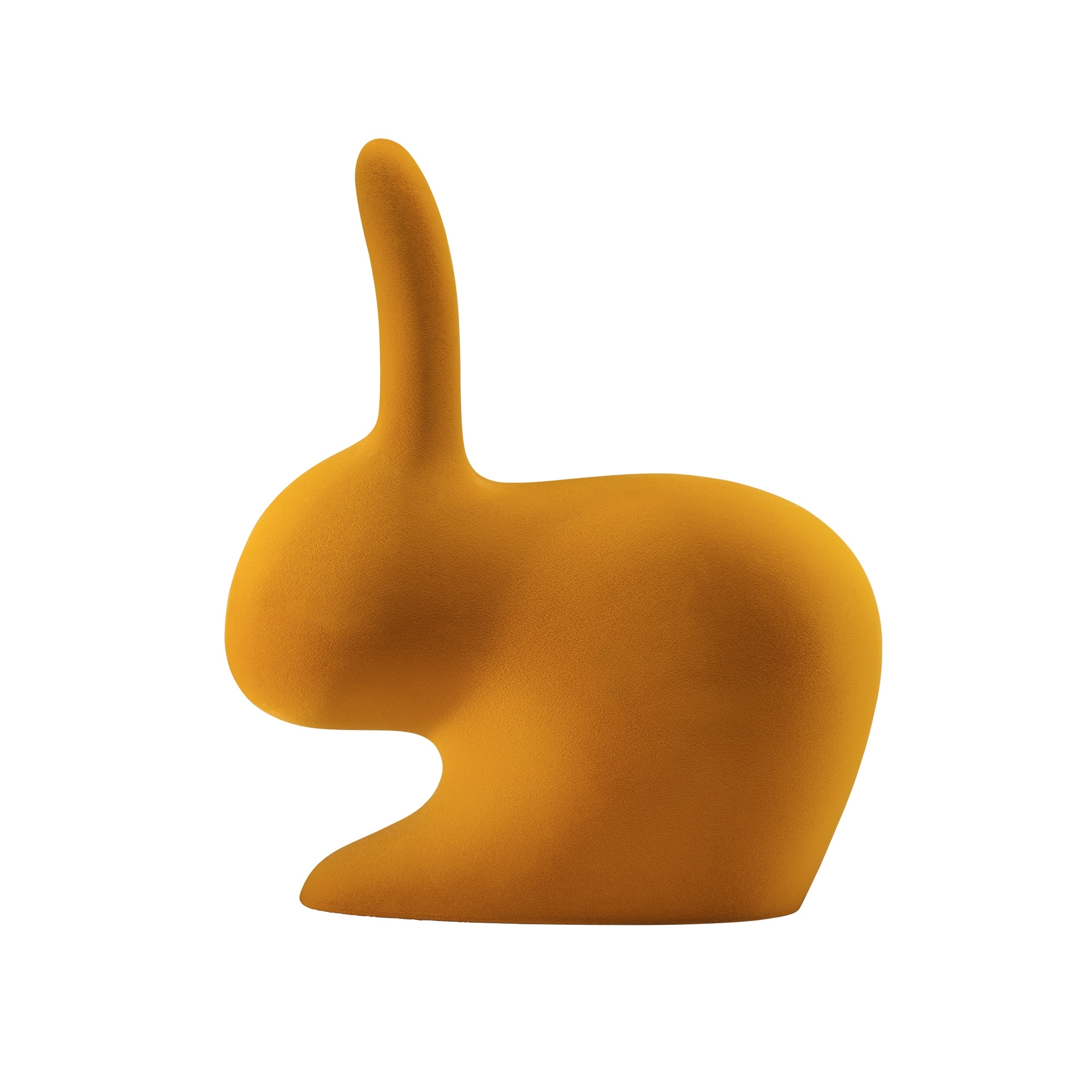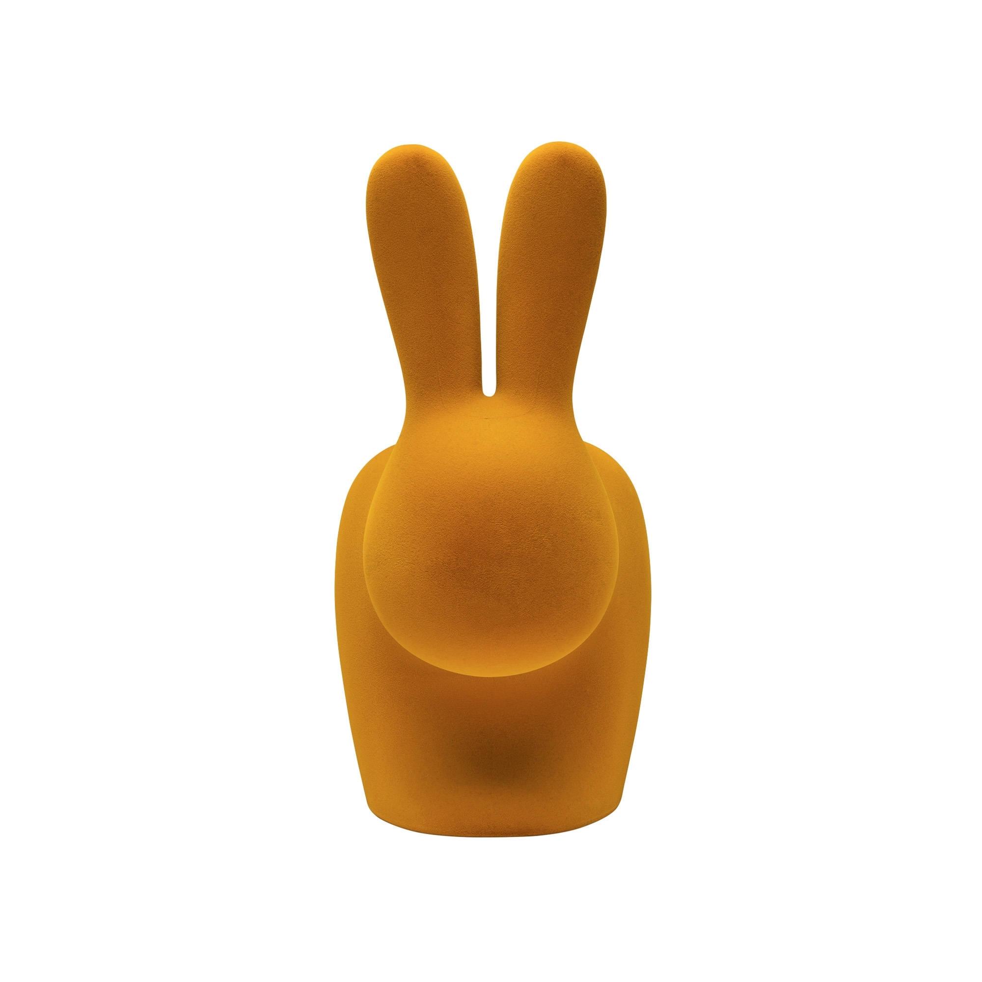 The Rabbit Chair with a Velvet Finish is an unparalleled piece of whimsical and creative design, crafted by Qeeboo entirely from recyclable polyethylene, a material of the highest quality that promises durability, strength, and ease of maintenance and cleaning. This magnificent chair is available in six splendid colors: dark gold, orange, red, fuchsia, purple, and turquoise, making it adaptable to any setting, whether it be a bedroom or a living room. The sinuous shape represents a rabbit and can be used by leaning on the ears or on the opposite side, inviting users to lean back and relax comfortably. Furthermore, the chair is characterized by a velvety surface, offering a soft and inviting sensation to the touch. Designed by Stefano Giovannoni for Qeeboo.