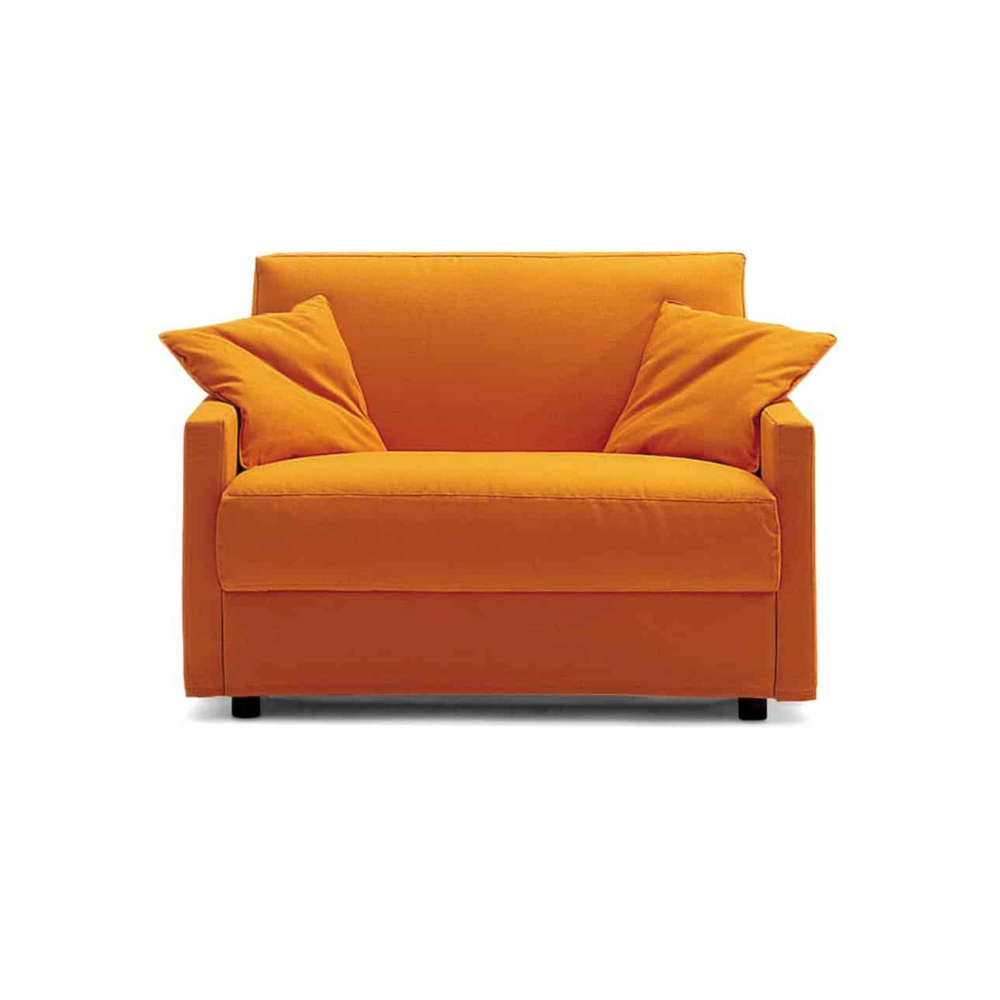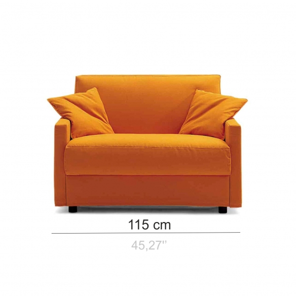 The Go Small armchair bed is a sophisticated and interesting piece of furniture made by Campeggi, featuring a steel structure that ensures durability and strength even with frequent use, an electro-welded steel mesh frame with an elastic sleeping platform that coincides with the armchair seat, and an extremely comfortable mattress available in either CFC-free polyurethane or natural latex. This armchair bed comes in various finishes, making it customizable to any setting, whether classic, minimalist, cutting-edge, or casual: indeed, Go Small can be placed in a living room, home or commercial office, in a waiting room, or in a bedroom, becoming the focal point. Its strength lies in being multifunctional: from a simple and soft armchair by day, it transforms into a lovely and welcoming restful bed, thus offering solutions that adapt to different needs. By choosing materials and production processes that minimize environmental impact, Campeggi demonstrates commitment and care towards the well-being of both our planet and the user. The Go Small armchair bed is a marvel of modern design, a true fusion of elegance, functionality, and innovation. Designed and engineered by Campeggi.