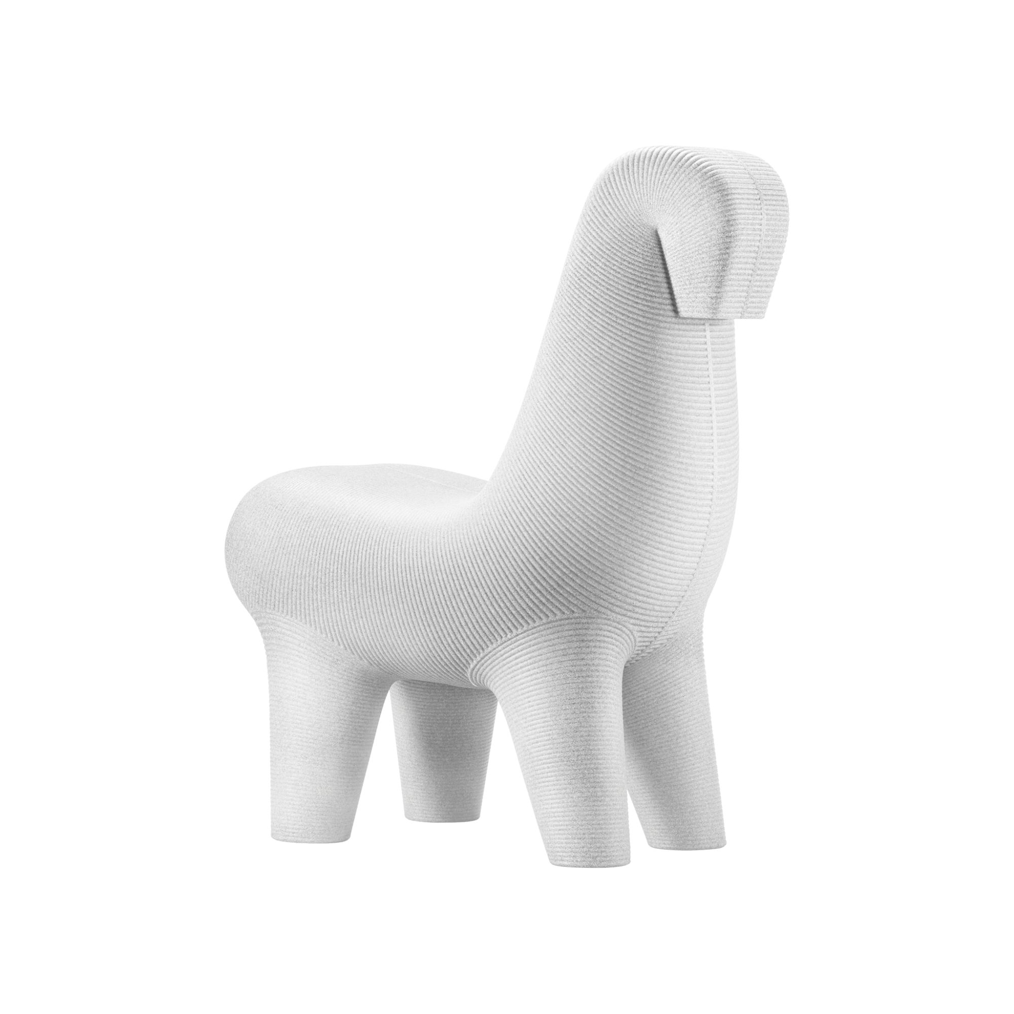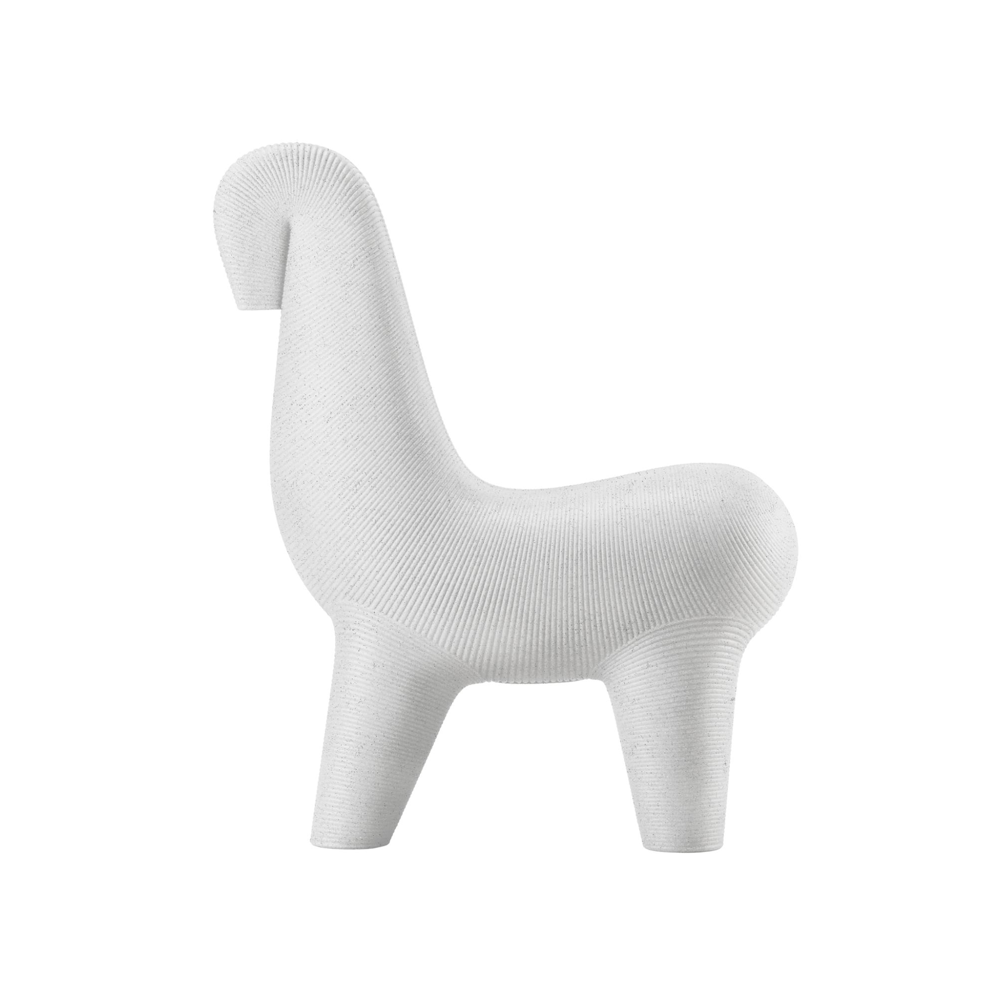 The Ghoda chair is a seating option with a vibrant physical presence, crafted by Qeeboo entirely from recyclable polyethylene, a resilient, eco-friendly, and durable material. Reflecting the artistic talent of the designer, the chair depicts a horse in a stylized form, inspired by the most iconic work of Satyendra Pakhalé, the BM Horse family created in 2000. Ghoda refers to its "sensuality" and the "lost-wax spaghetti casting process," a project at the crossroads of craftsmanship and industry, where its imagery straddles ethnic culture and pop. Suitable for both modern interiors and exteriors due to its weather resistance, it can be used as a conventional seat or as a sculptural design element that enhances the space in which it is placed: whether situated in a living room, a lounge, or your children's bedroom, this chair lends a touch of magic and wonder. Designed by Satyendra Pakhalé for Qeeboo.