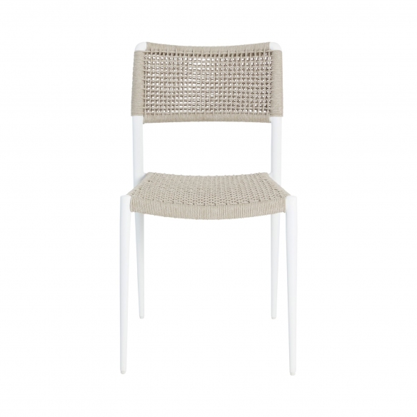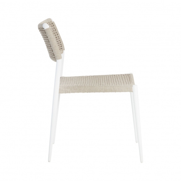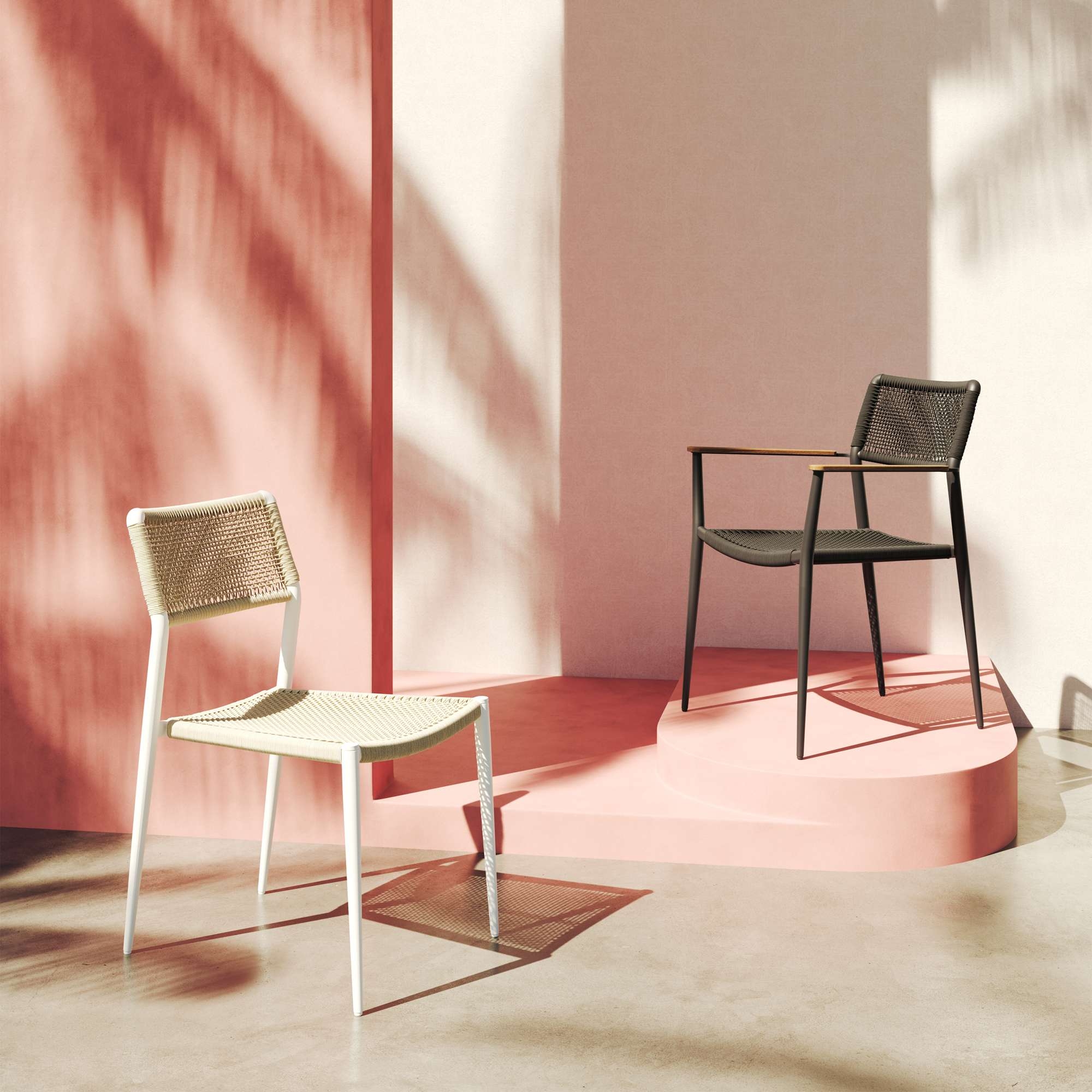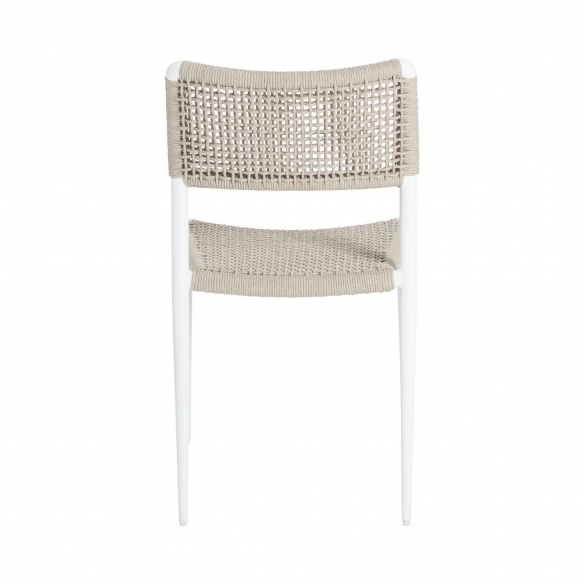 The Ray dining side Chair is made from the highest quality materials, such as its sturdy and lightweight aluminum frame, making the chair perfect for moving around. This outdoor dining chair has been designed with an innovative vision, as it combines elegance, durability, and comfort in a unique furniture solution. Ray is available in four stunning colors, making it versatile with any style of furnishing, from minimalist to more classic. Diphano pays attention to even the smallest details, from the design of the chair to the selection of the woven rope, making the Ray chair a desirable object for those looking for an outdoor chair that can create a cozy and comfortable atmosphere. Ray is pleasantly elegant to the eye and absolutely functional; the handwoven, durable ropes make up the seat and backrest, adding a natural touch. The Ray chair embodies the essence of refinement and versatility for outdoor spaces. Relax too in this soft and timeless jewel.