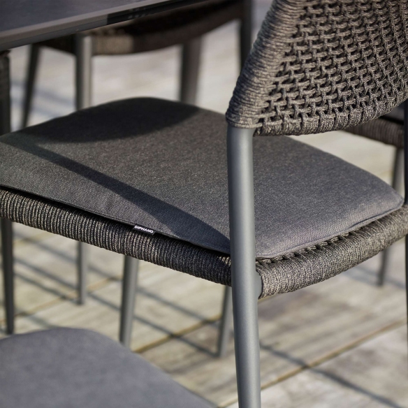 The Ray dining side Chair is made from the highest quality materials, such as its sturdy and lightweight aluminum frame, making the chair perfect for moving around. This outdoor dining chair has been designed with an innovative vision, as it combines elegance, durability, and comfort in a unique furniture solution. Ray is available in four stunning colors, making it versatile with any style of furnishing, from minimalist to more classic. Diphano pays attention to even the smallest details, from the design of the chair to the selection of the woven rope, making the Ray chair a desirable object for those looking for an outdoor chair that can create a cozy and comfortable atmosphere. Ray is pleasantly elegant to the eye and absolutely functional; the handwoven, durable ropes make up the seat and backrest, adding a natural touch. The Ray chair embodies the essence of refinement and versatility for outdoor spaces. Relax too in this soft and timeless jewel.