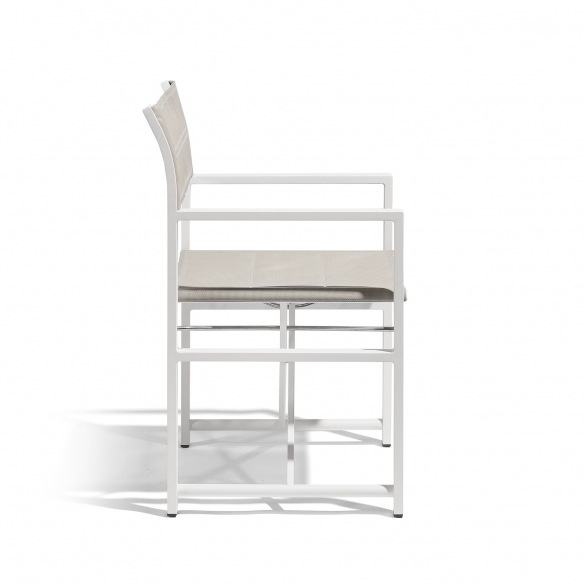 The Alexa folding director's chair is an elegant and practical choice for adding a touch of design to your garden. This folding director's chair has been crafted with high-quality aluminum that promises robustness and ensures lasting durability. The seat and backrest are covered in Batyline fabric that withstands the elements, from UV rays to humidity and rain, making it perfect for outdoor use. Alexa is available in three beautiful colors, matching any style and decor, which allows for personalization of the space according to user preferences. Its minimalist and essential design fits various settings, such as private gardens, hotel terraces, or poolside, creating an engaging and impactful space. Moreover, this wonderful chair is easily foldable, perfect for crowded evenings in the garden or ideal for hotels. Alexa is ideal for moments of pure relaxation in the sun with a book in hand, as well as for social gatherings or pool parties, becoming an essential piece of outdoor furniture for those seeking a balance between functionality and sophistication.