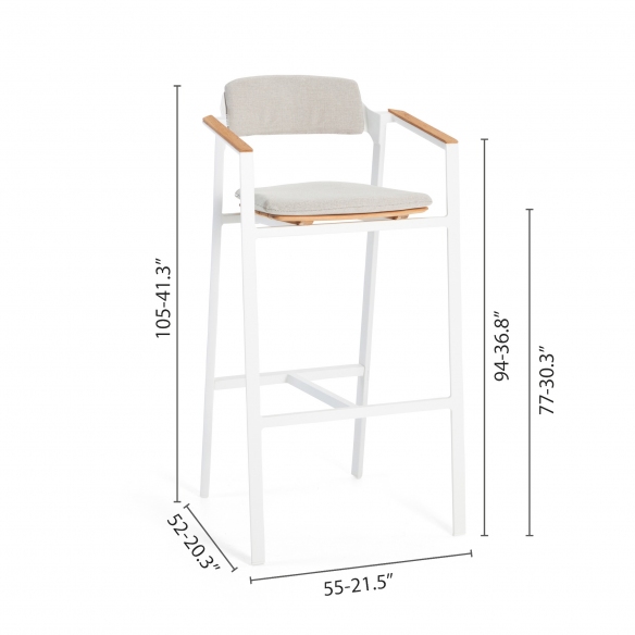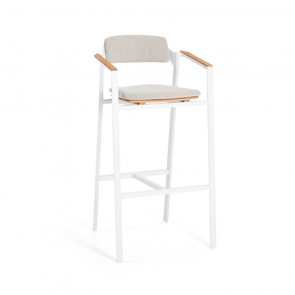 The Icon barstool, with a height of 77.5 cm, is a wonderful jewel made of robust and lightweight aluminum that facilitates movement, and of precious Teak wood that ensures resistance to various climatic changes such as rain, humidity, and UV rays, therefore perfect for outdoor use. Available in four different and beautiful colors, the Icon barstool has clean and minimalist lines, and harmoniously adapts to any type of decor and style, from a rustic and natural garden to a more modern terrace. The height of 77.5 cm makes it ideal to be placed next to high bars or tables, offering a comfortable seat for socializing outdoors. Comfort for the Icon barstool is a priority: this design piece features an integrated footrest to support a pleasant seat for extended periods. Furthermore, the Teak finish combined with powder-coated aluminum adds a warm and natural touch to the environment and makes it perfectly matchable with dining tables with Teak finish. Choose the Icon barstool with a height of 77.5 cm, and it will become a must-have for your limitless comfort.