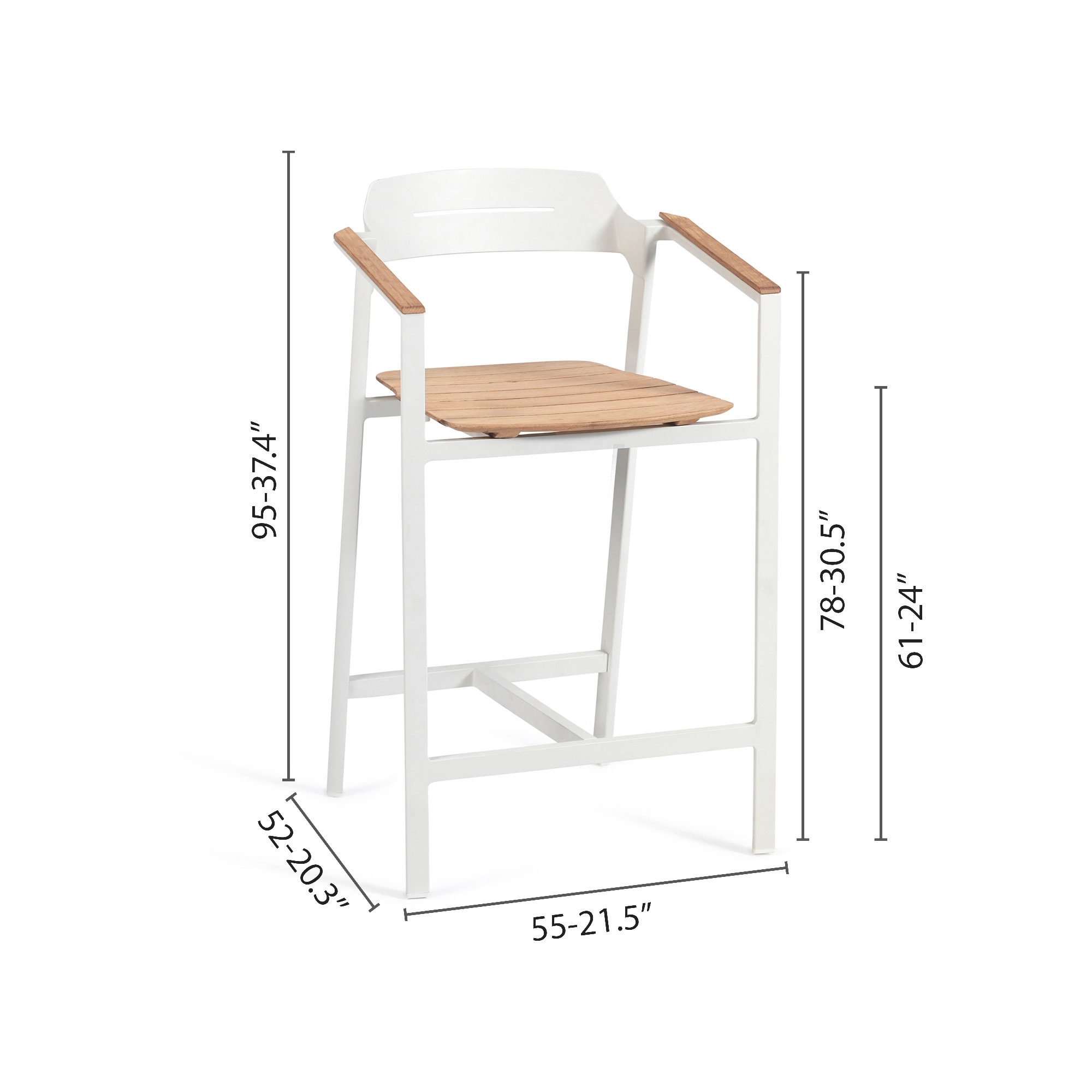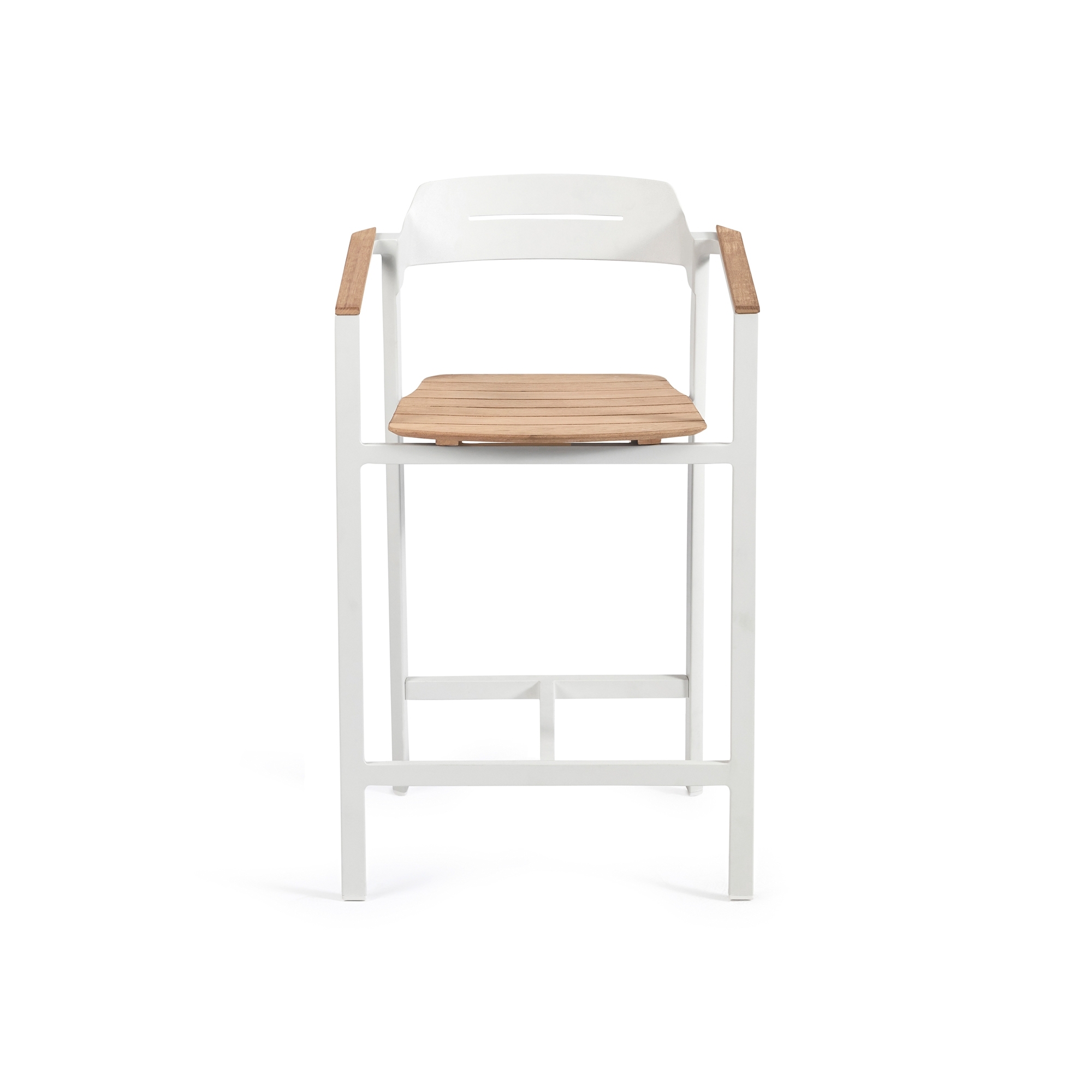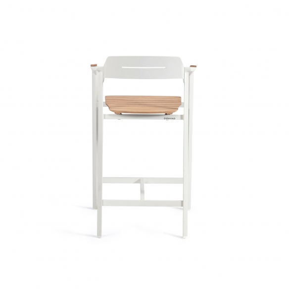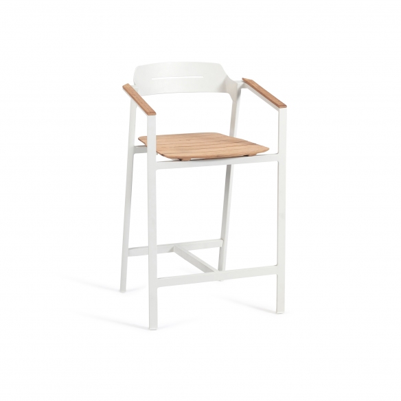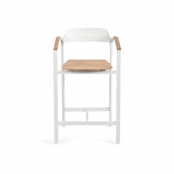 The Icon barstool, with a height of 61 cm, is a wonderful jewel made of robust and lightweight aluminum that facilitates movement, and of precious Teak wood that ensures resistance to various climatic changes such as rain, humidity, and UV rays, therefore perfect for outdoor use. Available in four different and beautiful colors, the Icon barstool has clean and minimalist lines, and harmoniously adapts to any type of decor and style, from a rustic and natural garden to a more modern terrace. The height of 61 cm makes it ideal to be placed next to high bars or tables, offering a comfortable seat for socializing outdoors. Comfort for the Icon barstool is a priority: this design piece features an integrated footrest to support a pleasant seat for extended periods. Furthermore, the Teak finish combined with powder-coated aluminum adds a warm and natural touch to the environment and makes it perfectly matchable with dining tables with Teak finish. Choose the Icon barstool with a height of 61 cm, and it will become a must-have for your limitless comfort.