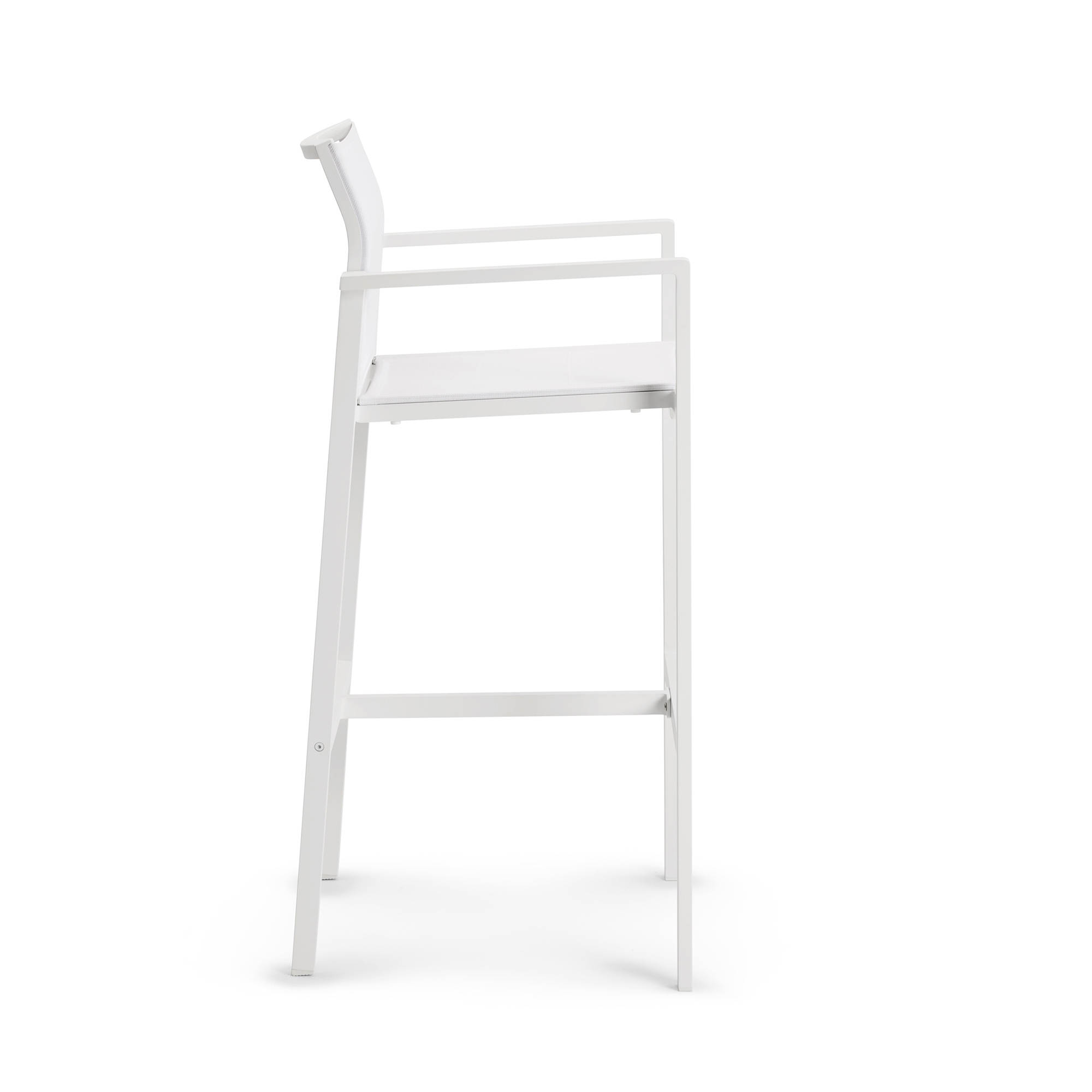 The Alexa Barstool, with a height of 77 cm, is a beautiful gem from the collection created by Diphano, made of high-quality aluminum that ensures sturdiness, lightness, and long-term durability. Furthermore, this wonderful barstool is covered in Batyline fabric, which offers resistance to all weather conditions, such as rain, UV rays, and humidity, making it ideal for outdoor spaces. Available in three beautiful colors, the Alexa barstool harmoniously matches any style of decor, from a modern garden to a more classic and traditional hotel terrace. With a height of 77 cm, the Alexa barstool is designed to fit perfectly under most standard bar counters, without sacrificing style and comfort. Thanks to the Batyline finish, the barstool does not need any additional cushions, as it is a fabric that provides endless comfort. Choose the Alexa barstool and add a touch of style and elegance to your home.
