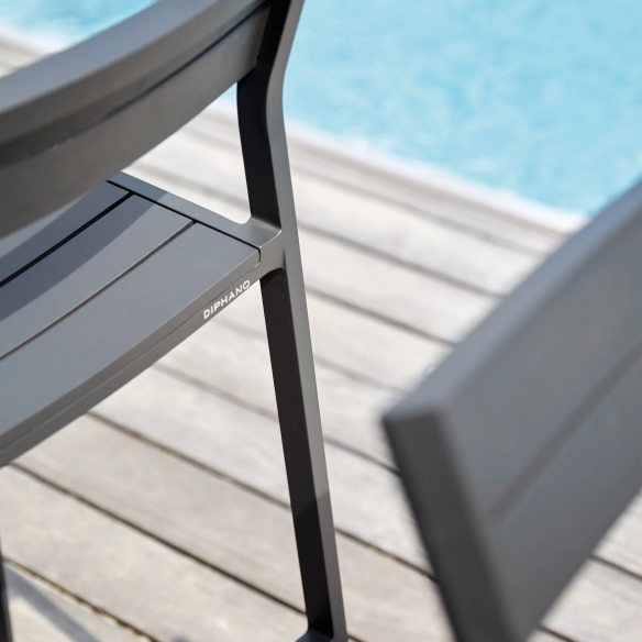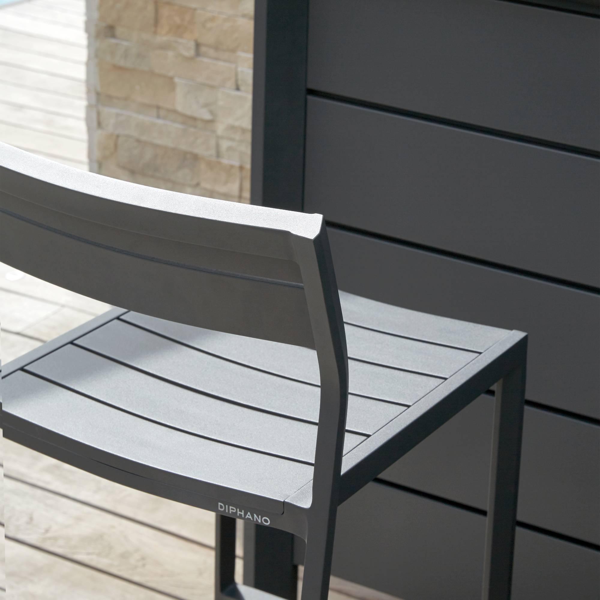 The Metris BarStool, standing at a height of 78 cm, is crafted by Diphano from lightweight and sturdy aluminum, ensuring durability against weather conditions such as rain, humidity, and UV rays, making it perfectly suited for outdoor environments. This outdoor barstool is available in various colors, making it versatile and easily matched with different styles of decor and furnishings, from modern gardens to more traditional, classic terraces. Additionally, the Metris barstool comes with an integrated footrest for added support, making it an ideal accompaniment for moments of relaxation alone or with company. For the Metris collection, an optional set of cushions for the seat and back is available made from the durable and soft Sunbrella fabric, which withstands outdoor use. With its 78 cm height, the Metris barstool can be paired with high bars or dining tables, providing a comfortable seat for eating or drinking with friends or family. Choosing the Metris barstool means opting for a style without limits that can enhance any space.