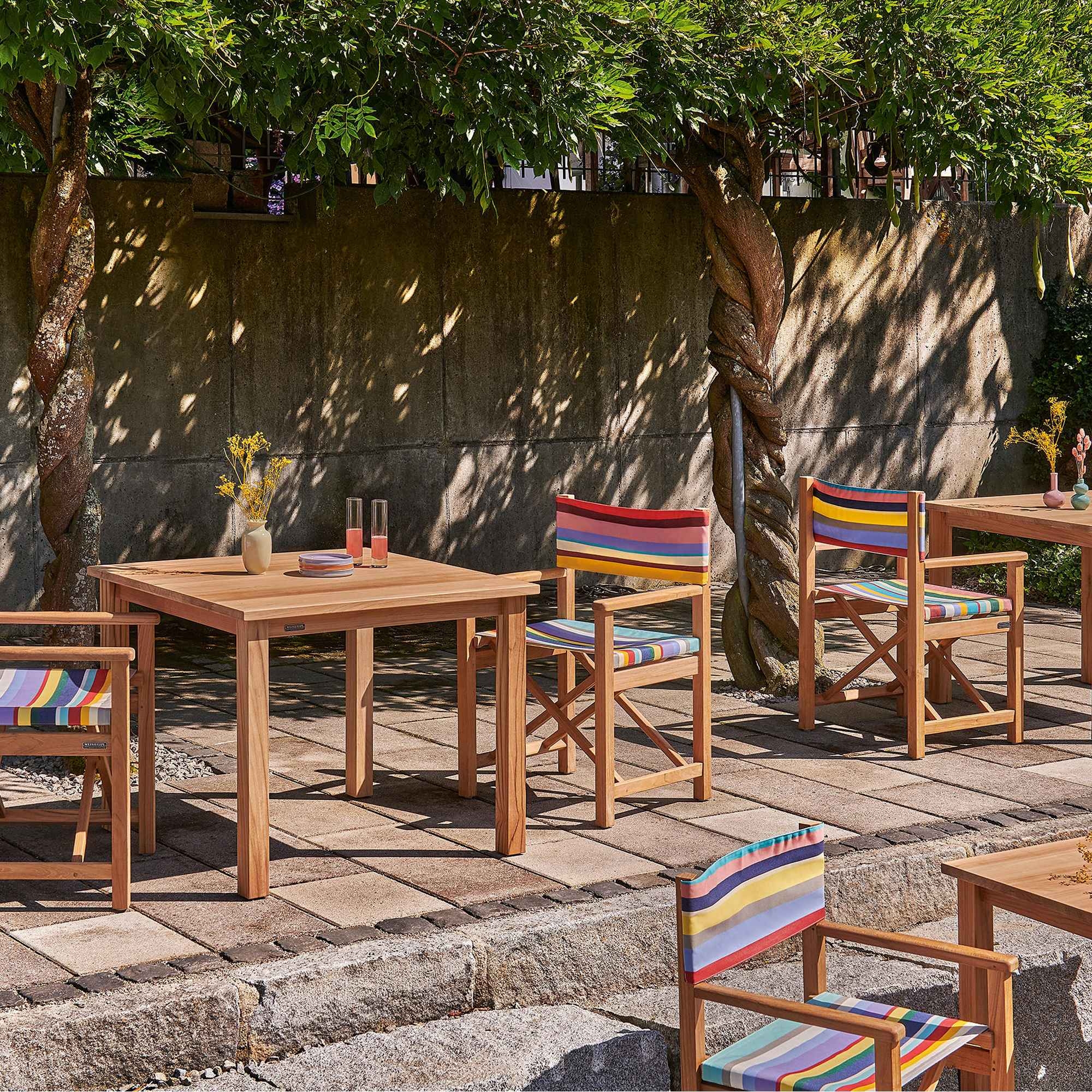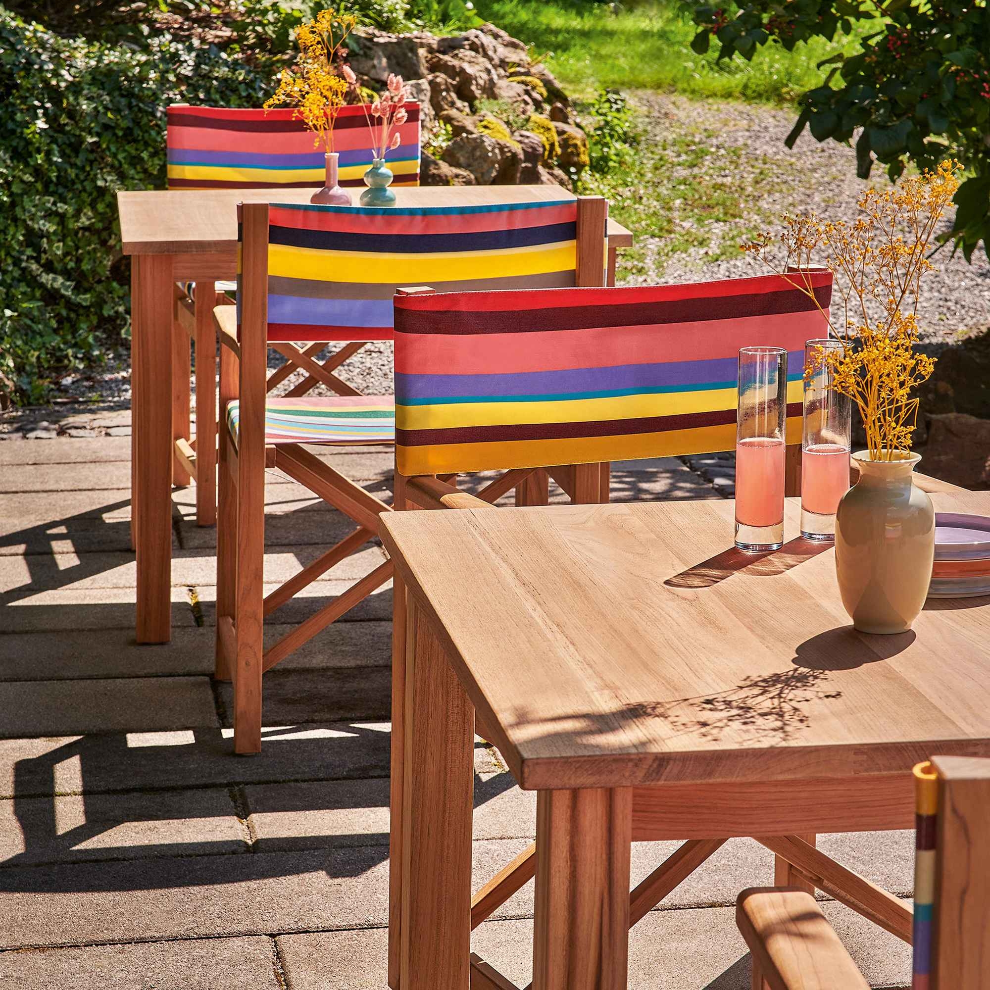 Introducing the Cabin outdoor armchair, crafted with an untreated solid teak frame and featuring a seat and back in Acrylfabric outdoor fabric. Available in a wide array of colors, the Cabin outdoor armchair is a refined blend of luxury and comfort. Drawing on classic inspiration, this armchair reimagines the director's chair with an added touch of elegance. Made with meticulous attention to detail, its solid teak structure not only ensures years of resistance and durability but also adds a touch of natural elegance to your garden or patio. The choice of vibrant, weather-resistant fabrics from Weishäupl's comprehensive collection makes each armchair unique, allowing you to customize your outdoor space to match your personal style. The versatility of the Cabin outdoor armchair makes it perfect for any occasion: from morning breakfasts in the open air to evenings under the stars, this armchair promises uncompromised comfort. Discover the perfect mix of functionality and aesthetics, and transform your garden into an oasis of relaxation and beauty. Crafted by Weishäupl.
