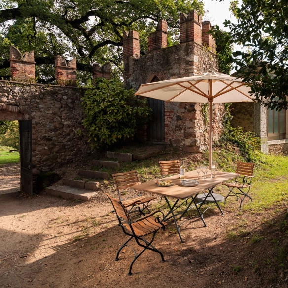 The Classic outdoor armchair, crafted with a painted aluminum frame and a solid Teak seat and backrest, comes in 3 colors for the frame. It is specifically designed to withstand all weather conditions, making it perfect for a garden, terrace, or a patio. As the name implies, the Classic armchair features a traditional design, which, due to its elegance, can also be perfectly matched with more contemporary settings. Beyond aesthetics, the Classic outdoor armchair by Weishäupl is also incredibly functional. Easy to clean and maintain, it promises years of trouble-free use. The combination of classic design and modern practicality makes the Classic armchair a must-have for any outdoor space.