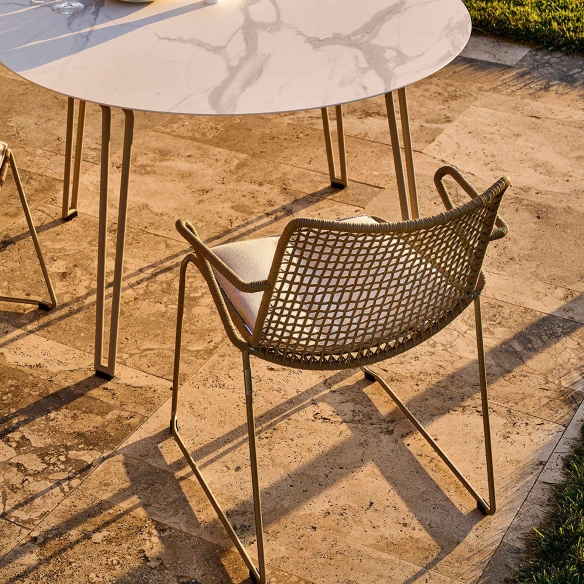 Slope outdoor armchair made with a powder-coated steel frame and a hand-woven polyester seat. Available in 3 colors, the Slope outdoor armchair is not only visually appealing, but also offers exceptional comfort and functionality for the patio, garden, or terrace. The Slope outdoor armchair is characterized by the use of bead-blasted, powder-coated stainless steel which blends perfectly with an easy-to-clean polyester fabric weave. Its minimalist, contemporary design beautifully adapts to any outdoor space, from the most modern to the most classic. Discover the pleasure of tasteful furnishing, without sacrificing functionality and durability of materials. Designed by Thomas Albrecht for Weishäupl.