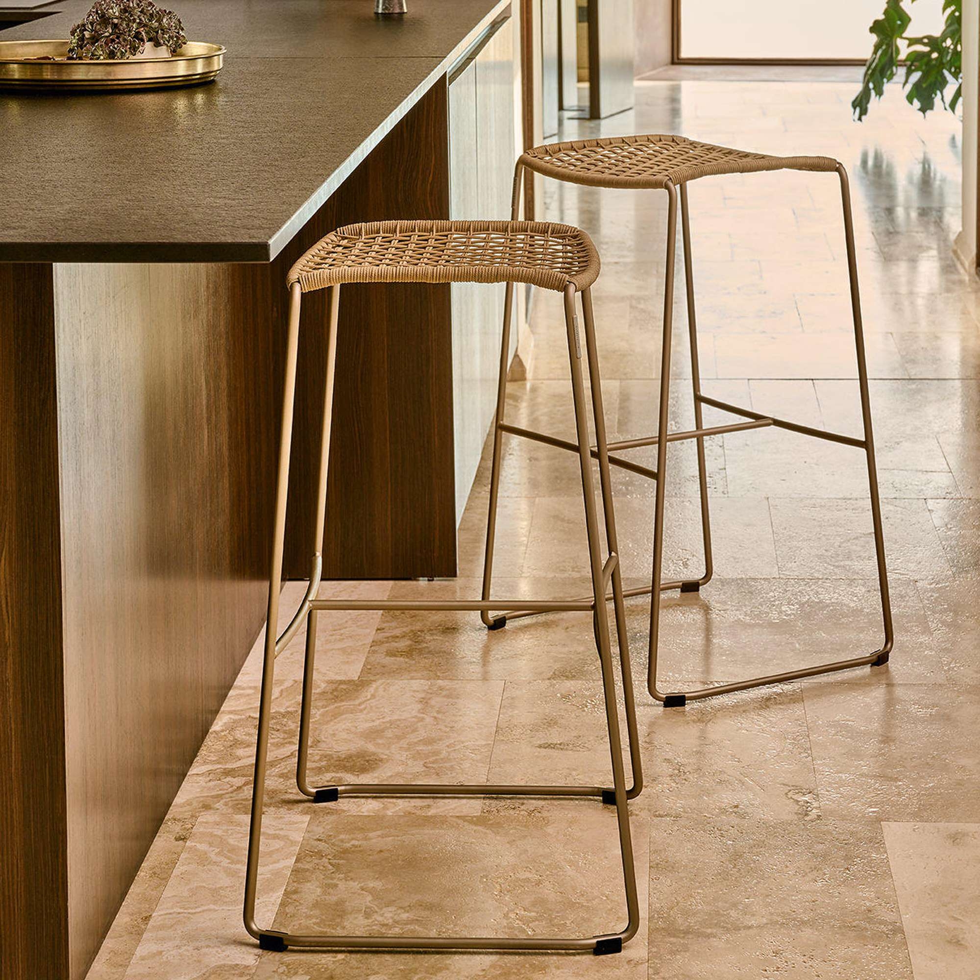 The Slope high outdoor stool, crafted with a powder-coated steel frame and hand-woven polypropylene seat, is available in 3 colors. This outdoor stool brings a touch of functional elegance to any outdoor space: from the garden to the terrace, from the patio to the veranda. The Slope outdoor stool exemplifies modern design with its clean lines and a structure that is both lightweight yet sturdy. Its captivating silhouette can add a modern touch to any outside environment, promising to grab attention and serve as a statement of style. Designed with both aesthetics and comfort in mind, the Slope outdoor stool offers a comfortable seat and a structure that promotes proper posture. Its height and ergonomic shape make it perfect for relaxing moments as well as hosting guests outdoors, providing a practical and elegant solution. Designed by Thomas Albrecht for Weishäupl.