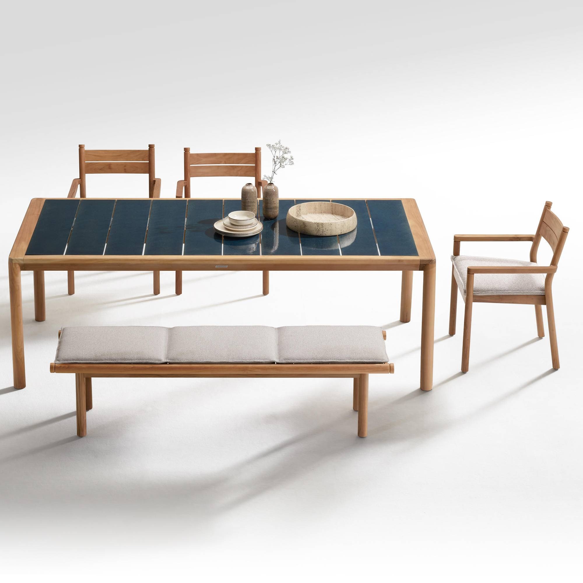 Apache outdoor chair made of natural teak with additional cushion in outdoor fabric. Conceived to celebrate the essence of modern design, the Apache outdoor chair blends clean lines and sophisticated shapes, making it an iconic piece for any outdoor space. Its structure, robust yet harmonious, adapts perfectly to gardens, terraces and patios, offering a comfortable and stylish seating experience. This design masterpiece not only elevates the aesthetics of any outdoor environment but also ensures durability and resistance, ensuring that your choice is a long-term investment. The Apache chair invites you to rediscover the pleasure of outdoor life, combining the excellence of design with functionality. Designed by Atmosphera Creative Lab.