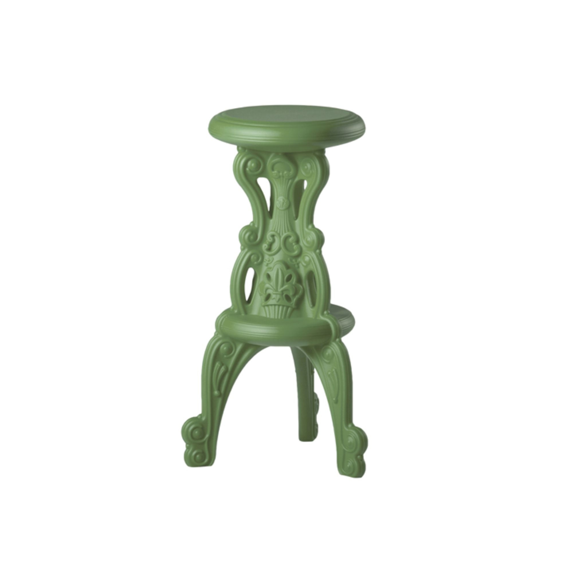 The Mister of Love high stool is a design element that is part of the Design Of Love collection made by Slide entirely of polyethylene, a material valued for its durability and longevity. This charming stool comes in various combinations, has a luxurious design brimming with details, and with its arched legs evoking Baroque style, it fits seamlessly into classic, modern, or minimalist settings. Whether placed in a garden, a living room, or on a terrace, the Mister of Love represents a unique furniture piece that does not go unnoticed. Moreover, the high stool has been designed with sustainability in mind, made from fully recyclable materials. This aspect, combined with attention to detail and construction quality, makes Slide's Mister of Love a perfect choice for those looking for a product that is durable, aesthetically pleasing, and environmentally friendly. Designed by Moro & Pigatti for Slide.
