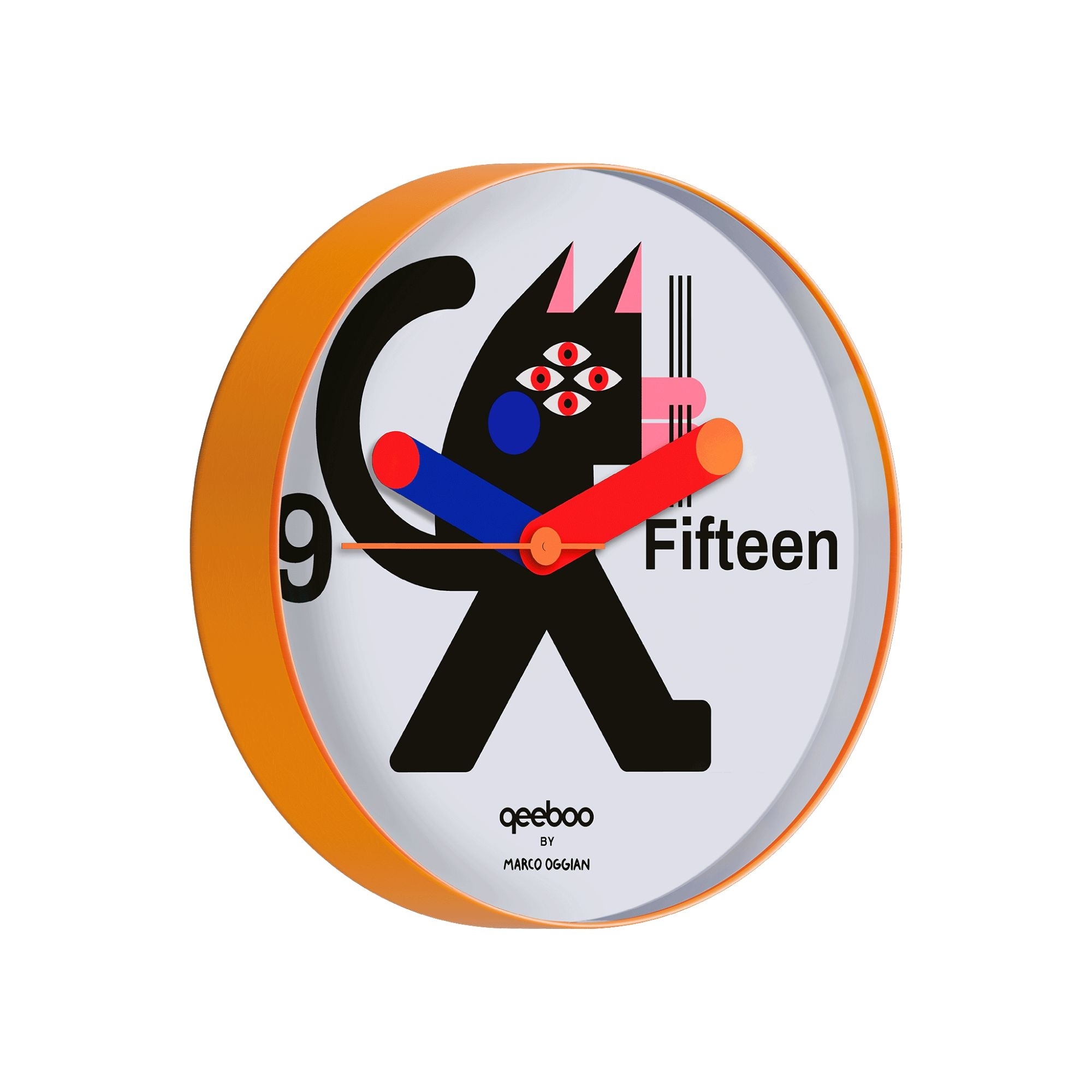 The Black Cat wall clock is an adorable piece of furniture created by Qeeboo in painted ABS and PVC. Featuring bright colors, the Black Cat clock can bring creativity and liveliness to any setting and type of context: from children's bedrooms to living rooms, kitchens, and home entrances. The Black Cat wall clock stands out for its captivating design, representing the stylized profile of a cat with four eyes, which not only serves as a decorative element but also incorporates a symbol revered for its elegance and mystery. This clock is not just a way to keep track of time but is also an art statement that infuses personality and character into any room it is placed in, demonstrating how everyday objects can be transformed into precious works of design. Designed by Marco Oggian for Qeeboo.