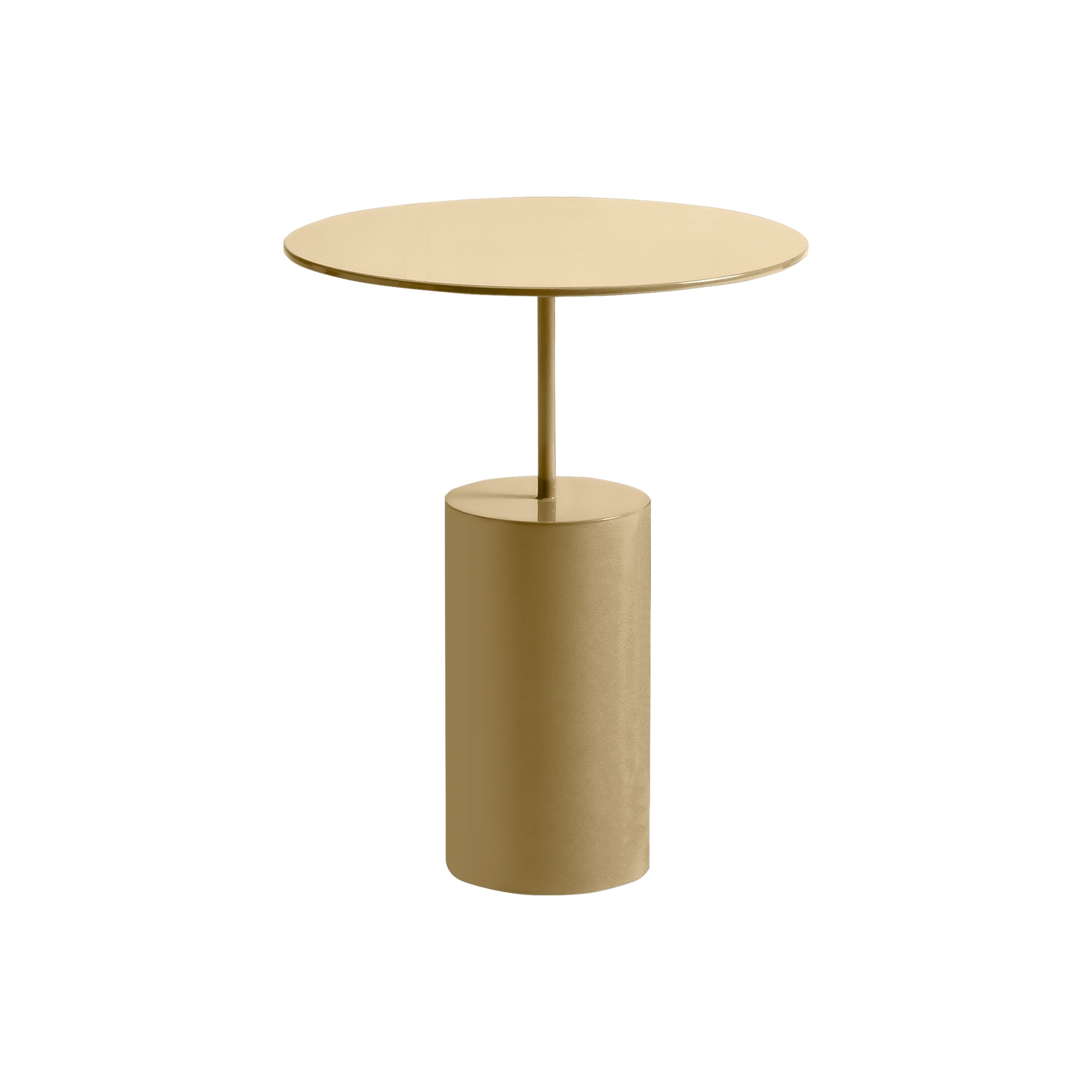 Cocktail coffee table with a diameter of 35 cm and a height of 43 cm, made with a sheet metal structure, epoxy painted in the oven. Available in various color finishes, the Cocktail coffee table features a steel disc that balances on a metal tube, supported by a cylindrical base, which offers a touch of modernity and style to your space. It fits perfectly with all the sofas in the MY home collection, satisfying your need for elegance and practicality. Designed by angelettiruzza for MyHome Collection.