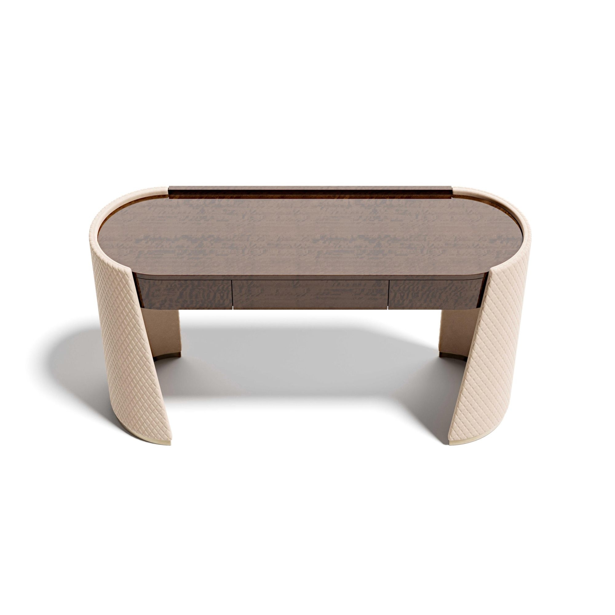 The Majestic is a wonderful desk crafted by Capital, featuring a wooden structure, leather sides, a metallic finish base, and an optional marble top - materials that ensure unparalleled sheen and significant longevity. This desk is characterized by an elegant and sophisticated design and, thanks to its various combinations, can be easily integrated into any setting and type of décor, whether placed in a living room or a professional office. Majestic is not just a piece of furniture but a true object of style that reflects the owner's personality and taste. Additionally, its surface is designed to accommodate any type of decorative item, from lamps to vases. With its delicate and graceful presence, the Majestic desk adds a touch of class and luxury to the home. Designed by Boatto Martino Studio.