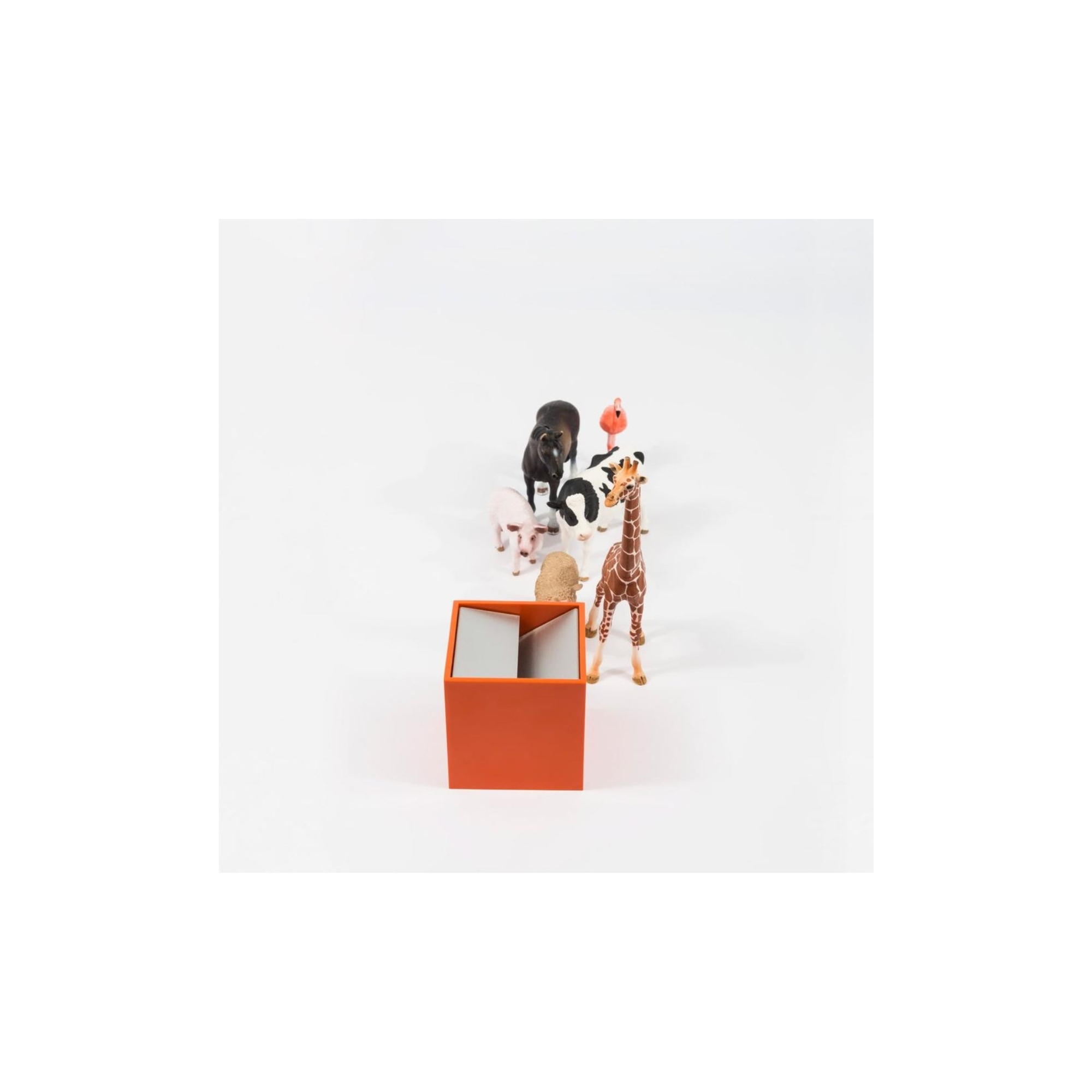 Cubo Piccolo ashtray made of melamine and aluminum. Available in black or white, Cubo is composed of two simple elements (a cubic shell and a metal sheet inserted inside it). A very innovative object not only for the concept from which it was created, but also for the simple fact that, unlike the other ashtrays, the butts are not exposed to direct vision, rather hidden inside. An object full of meaning that gives an exclusive elegance to your environment, marrying perfectly with all the accessories that surround it. Designed by Bruno Munari in 1957 for Danese Milano.