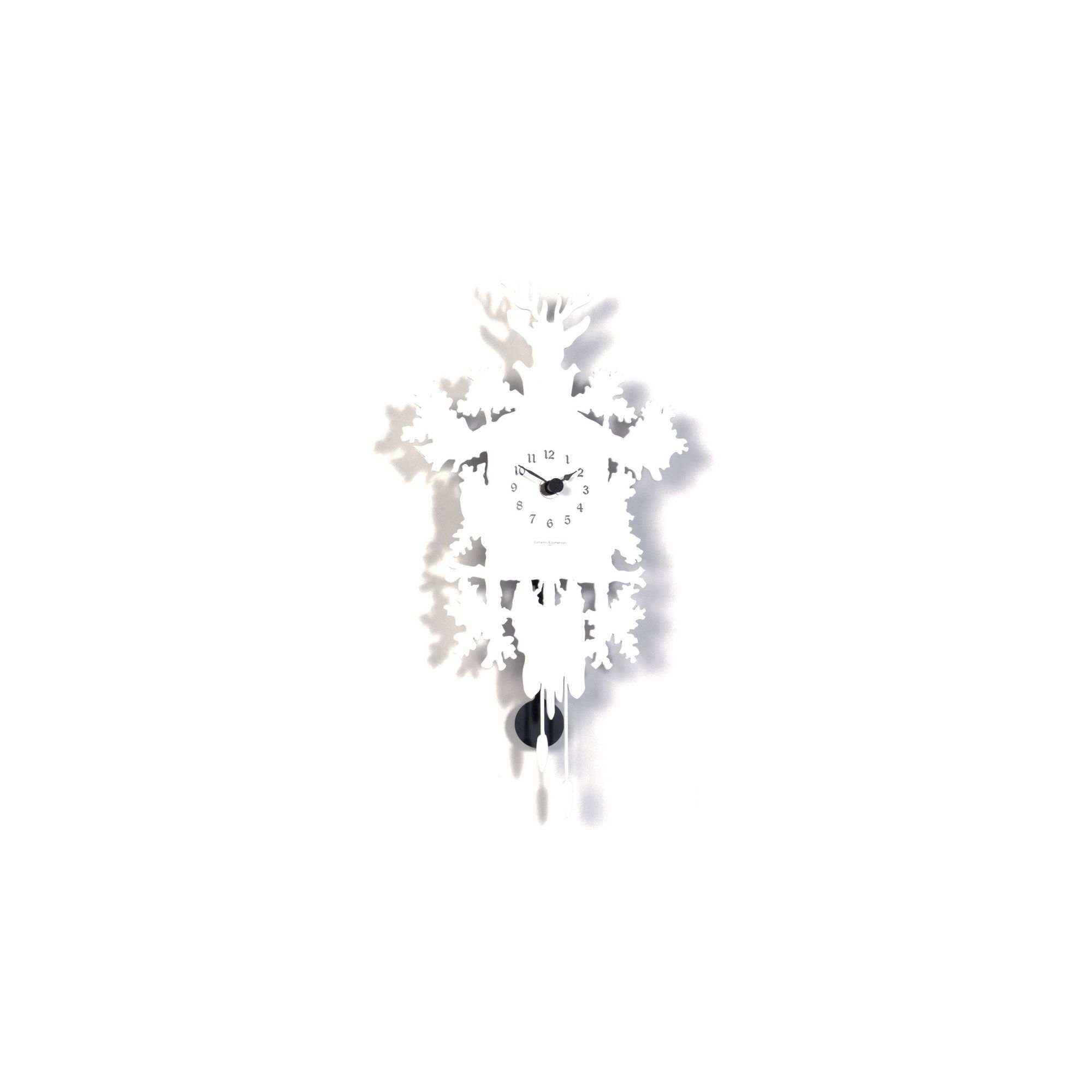 The Cuckoo clock is the most representative item by Diamantini & Domeniconi. In Pascal Tarabay's ultra-modern interpretation, it consistis of a laser-cut metal available in several lacquers. Cucù Low Cost traces the shape of the most famous Cucù clock by Diamantini & Domeniconi but in a smaller size without a cuckoo. Dimensions Width 17,5 cm, Depth 7 cm, Height 34,5 cm Materials Lacquered metal