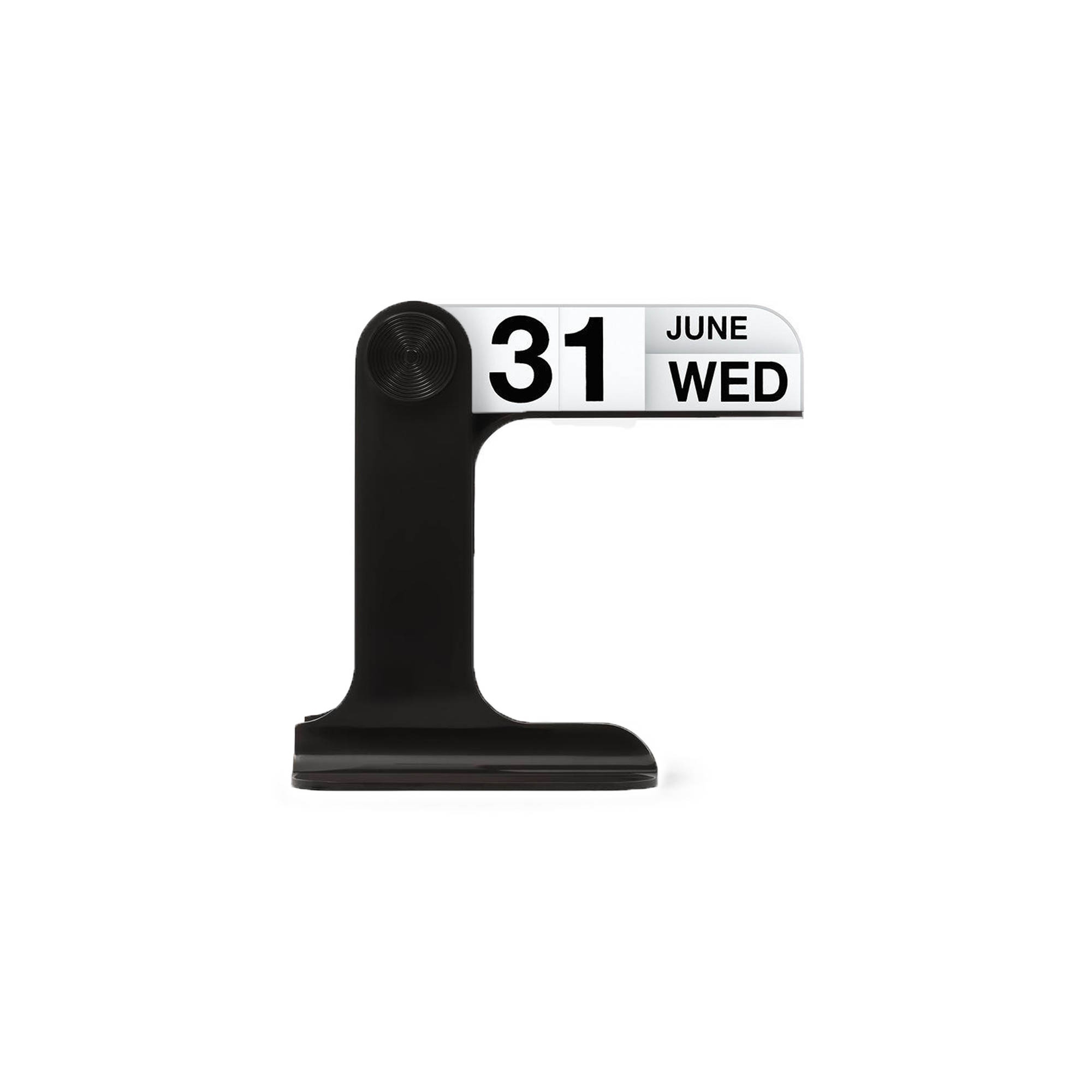 Timor calendar in the English version made of ABS and PVC. A real design icon and spearhead of the Danese Milano catalog, Timor is a perpetual calendar that, thanks to the fan-open PVC bands, will allow you to choose the palettes that identify the month, day and number of the week. Very elegant and compact, the Timor calendar is the classic example of flexibility, usability and transformability. Designed by Enzo Mari in 1967 for Danese Milano.