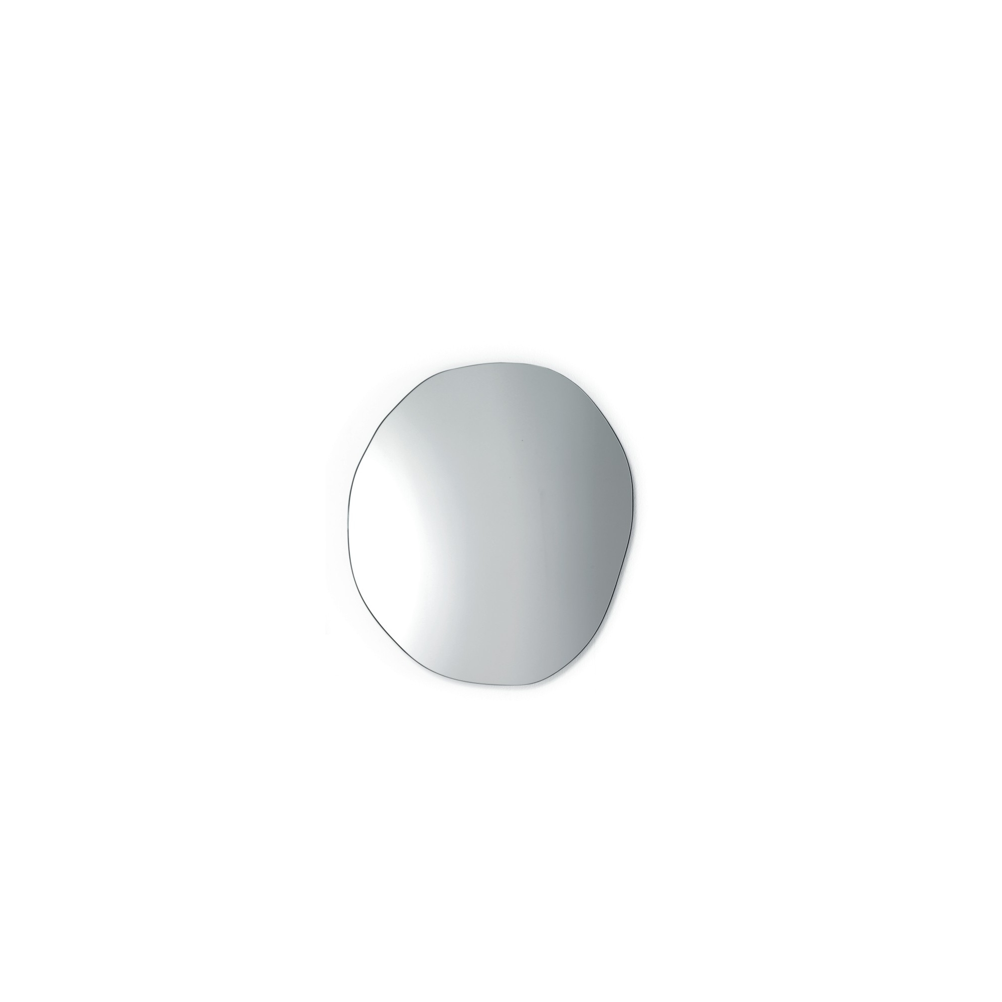 Giotto mirror made of glass with a diameter of 70 cm. Giotto is a mirror from circular part, but the circle turns out to be imperfect. Its asymmetrical shape makes it a unique piece of its kind. Designed by Kensaku Oshiro for Mogg.