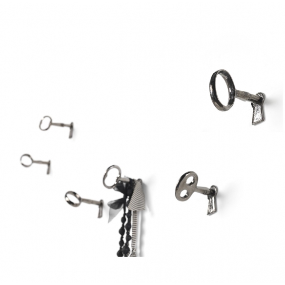Memorie 4 pcs coat rack set made of cast brass with glossy black finish. The 4 Memories keys have a renovated old-style design and amazing way of use, they can be attached to the wall freely at will. Memorie is what you are looking for if you like to travel through time with memories! Designed by Luca Somaini for Mogg.