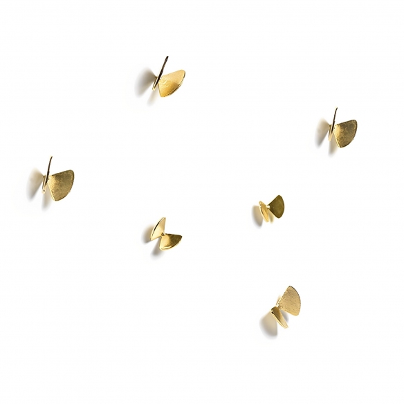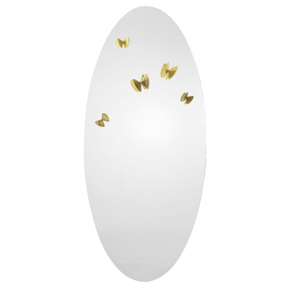 Bice oval wall mirror with kit of 5 brass casting butterflies. Available in mixed finishes (polished nickel, Oxidized brass) or in copper finish. Designed by Roberto Mora for Mogg.
