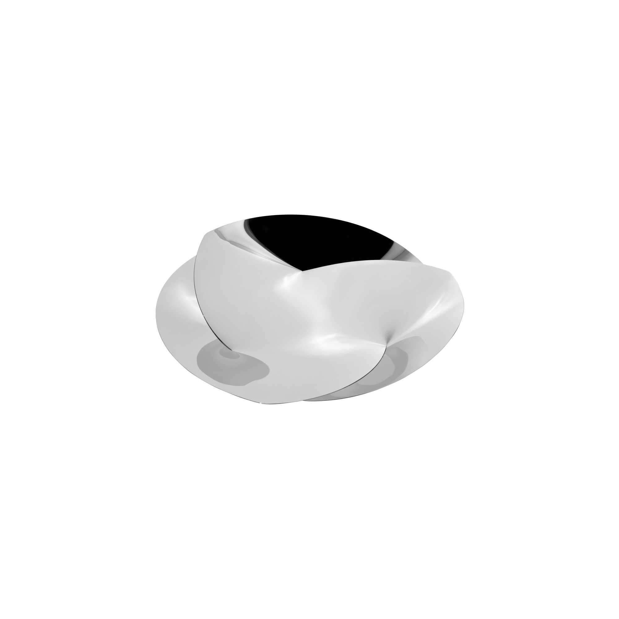 Resonance fruit bowl made of 18/10 stainless steel. Characterized by a very particular design, the Resonance fruit bowl is the result of sculptural three-dimensional shapes, with a subjecting of the steel sheet to cutting, bending and bending operations. Perfect as a container for large quantities of fruit, Resonance is also preparing to be a fantastic piece of furniture. Designed by Abi Alice for Alessi.