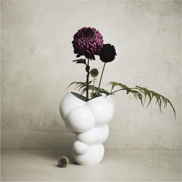 White fine porcelain vase, inspired by an inflatable pavilion, like soap bubbles, the spheres of fine porcelain come together to form an object with a unique character, designed by the Danish architect Bjarke Ingels for Rosenthal Dimensions Height 26 cm Materials Porcelain
