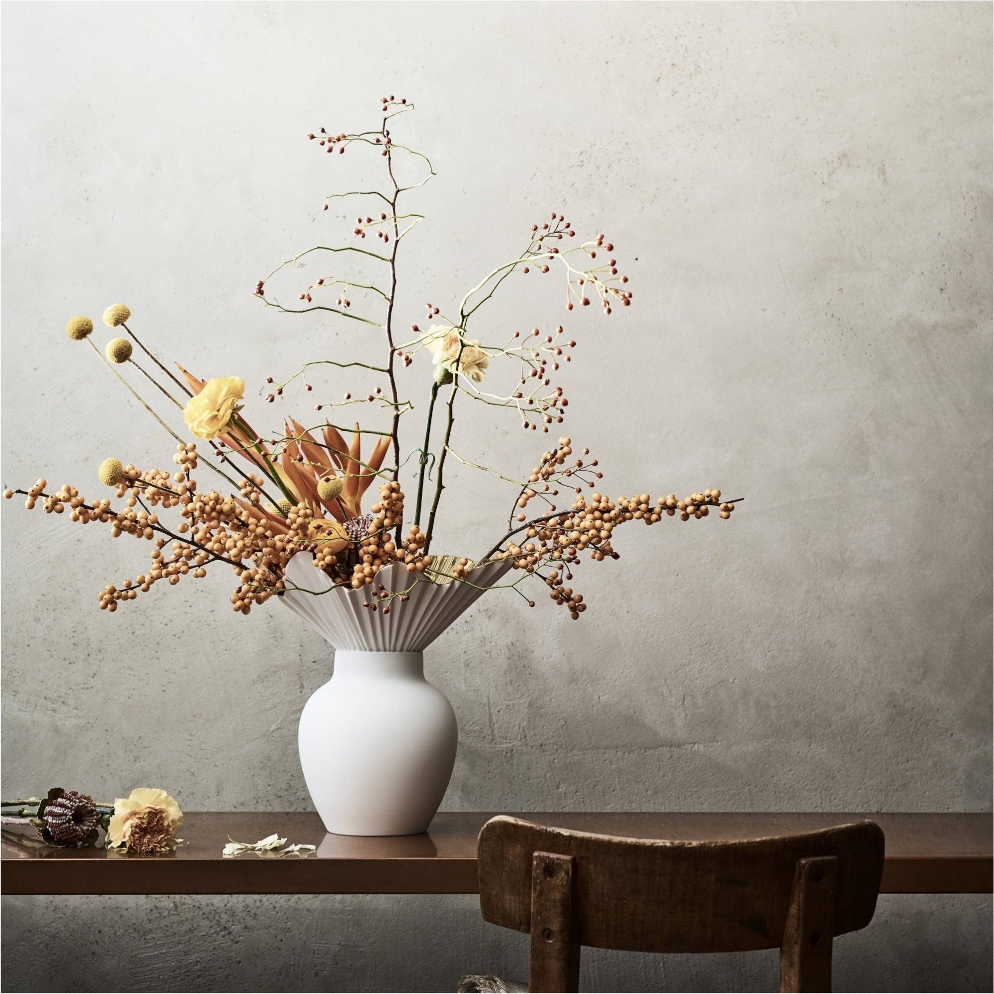 Vase with a classic shape and a particular pleated collar, entirely made of porcelain, designed by Sebastian Herkner for Rosenthal Dimensions Height 27 cm Materials Porcelain
