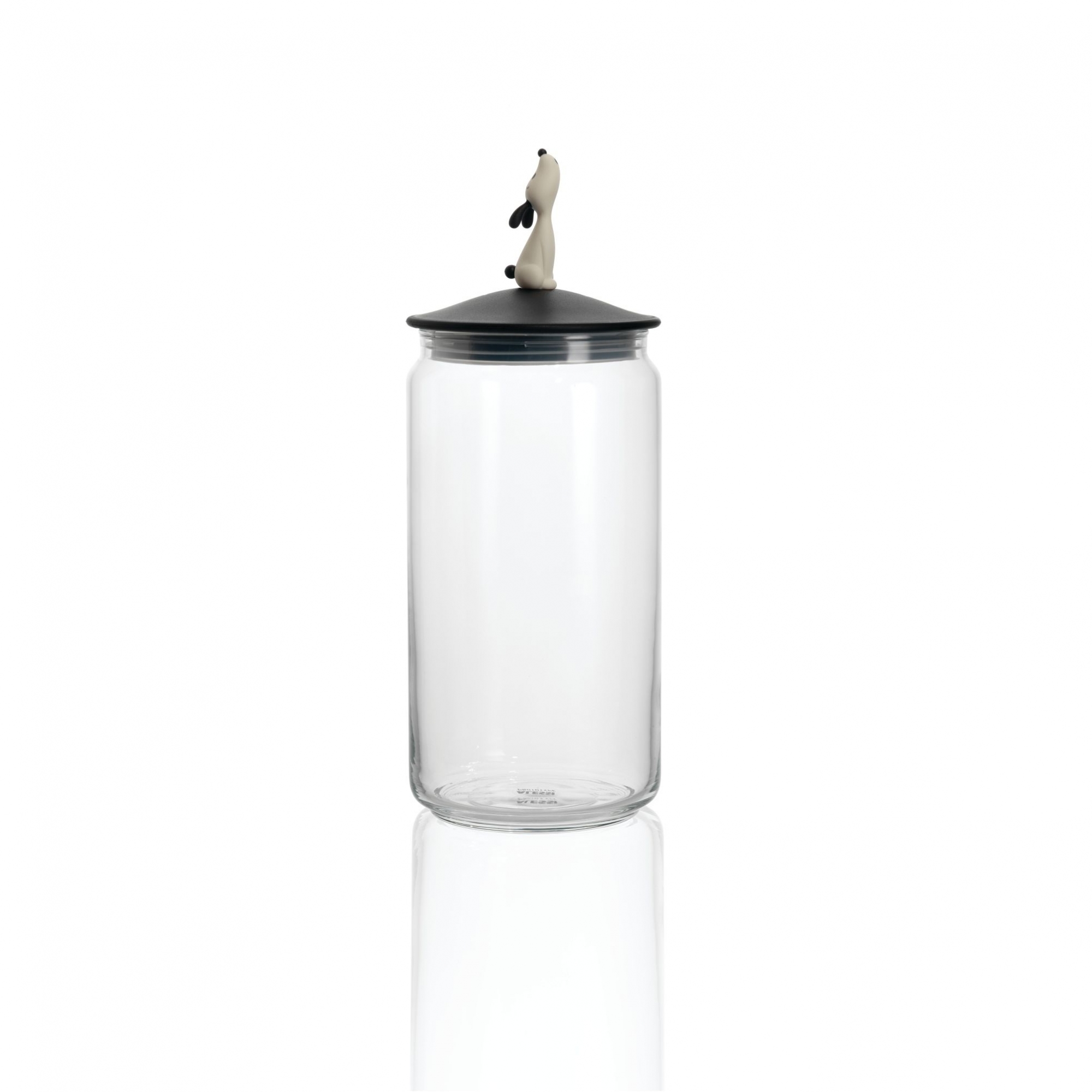 Lulajar jar for dog food made of glass with a lid in thermoplastic resin, black. Very charming and functional at the same time, Lulajar is an object for our four legs friends. With a funny cat in the lid, it is perfect for containing kibble for dogs; Lulajar can give a unique style to your tools collection. Designed by Miriam Mirri for Alessi.