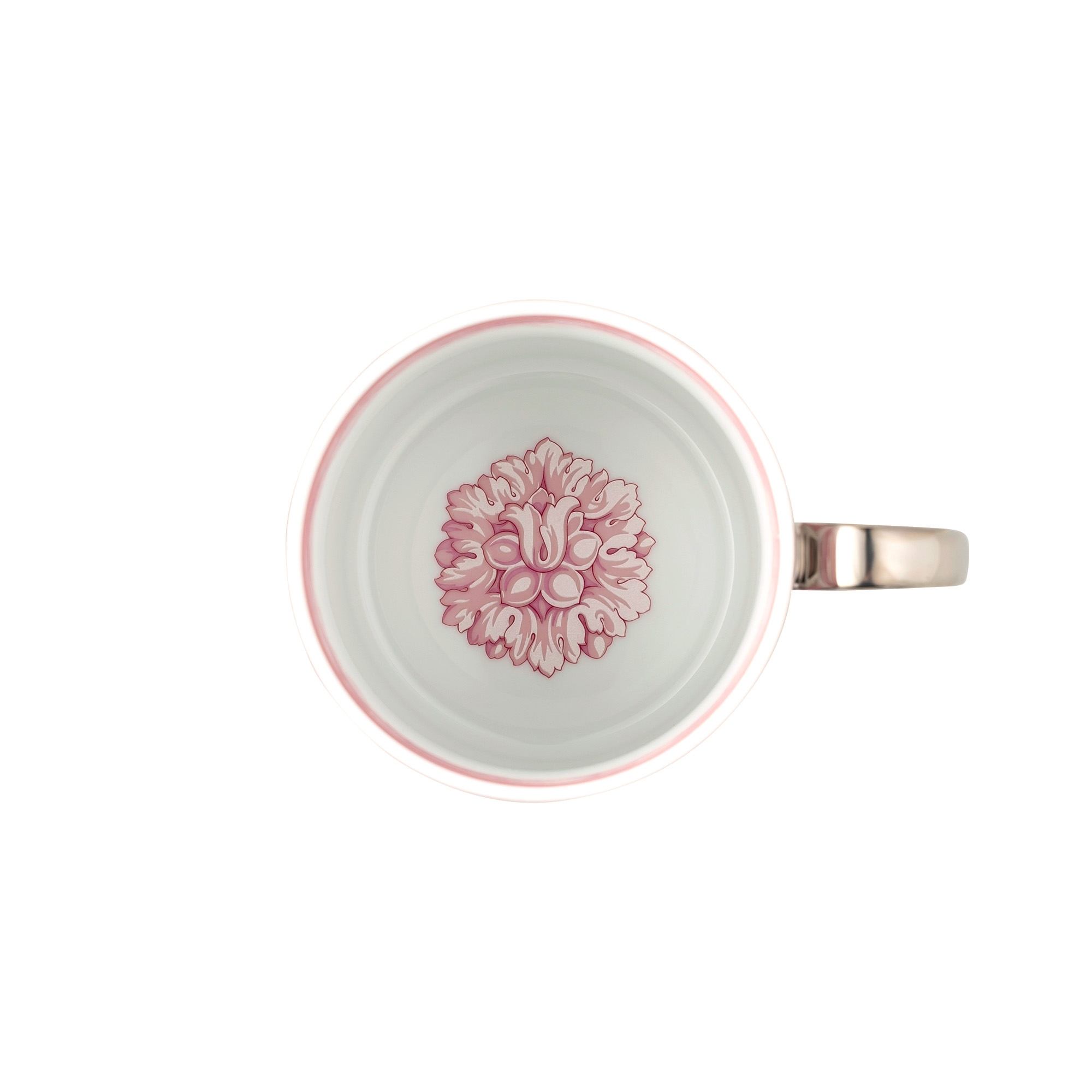 Barocco mug (capacity 30 cl) made of decorated porcelain. Available in 3 colours, the Barocco mug, with its roomy shape and elaborate details, offers a unique meeting between functionality and a rich aesthetic heritage. This piece is a true expression of Baroque ornamentation and a touch of majesty with every sip of hot drinks such as coffee, tea or hot chocolate. From collectors to simple design lovers, the Barocco mug stands as an object of desire, which combines the magnificence of the past with the practicality of the present, suitable for every scenario, from everyday life to more formal moments. Made by Rosenthal Versace.