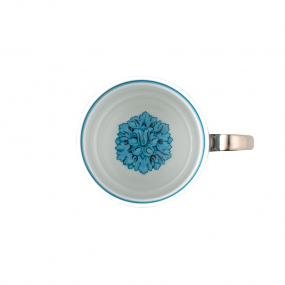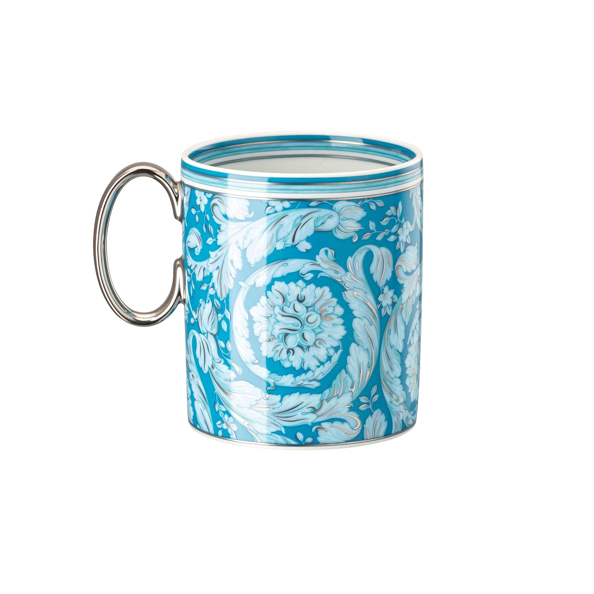 Barocco mug (capacity 30 cl) made of decorated porcelain. Available in 3 colours, the Barocco mug, with its roomy shape and elaborate details, offers a unique meeting between functionality and a rich aesthetic heritage. This piece is a true expression of Baroque ornamentation and a touch of majesty with every sip of hot drinks such as coffee, tea or hot chocolate. From collectors to simple design lovers, the Barocco mug stands as an object of desire, which combines the magnificence of the past with the practicality of the present, suitable for every scenario, from everyday life to more formal moments. Made by Rosenthal Versace.