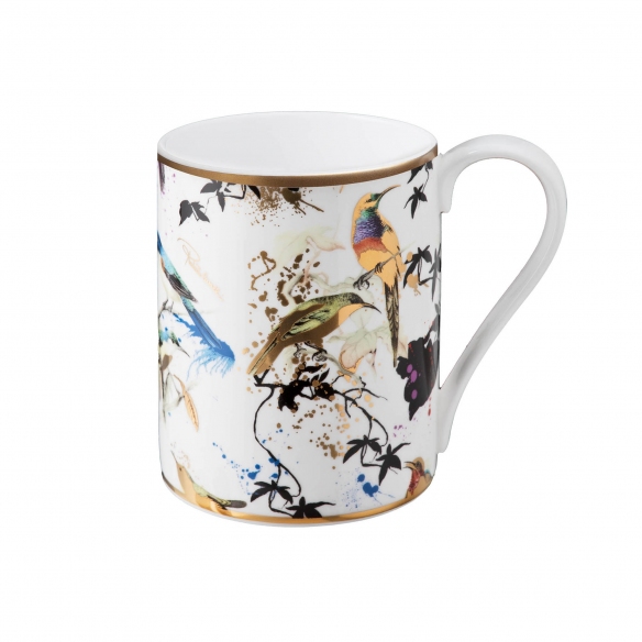 The Garden's Birds mug, 37 cl, is a beautiful masterpiece for your kitchen, crafted by Roberto Cavalli from Bone China porcelain, a material admired for its remarkable longevity and elegance. This mug features an intricate and vibrant image of avian life in a lush garden. The colorful birds, rendered with meticulous attention to detail, appear as vivid and lively creatures against the backdrop of exotic flora. Suitable for modern, casual, or classic table settings, the Garden's Birds mug serves not only as a container for tea, milk, or various infusions but becomes an actual design set that uniquely captures the attention of guests. The Garden's Birds mug is a wise choice for those who celebrate opulence in their daily life, turning the act of dining into a luxurious event. Purchase this exquisite mug right here, on Newpop.it!