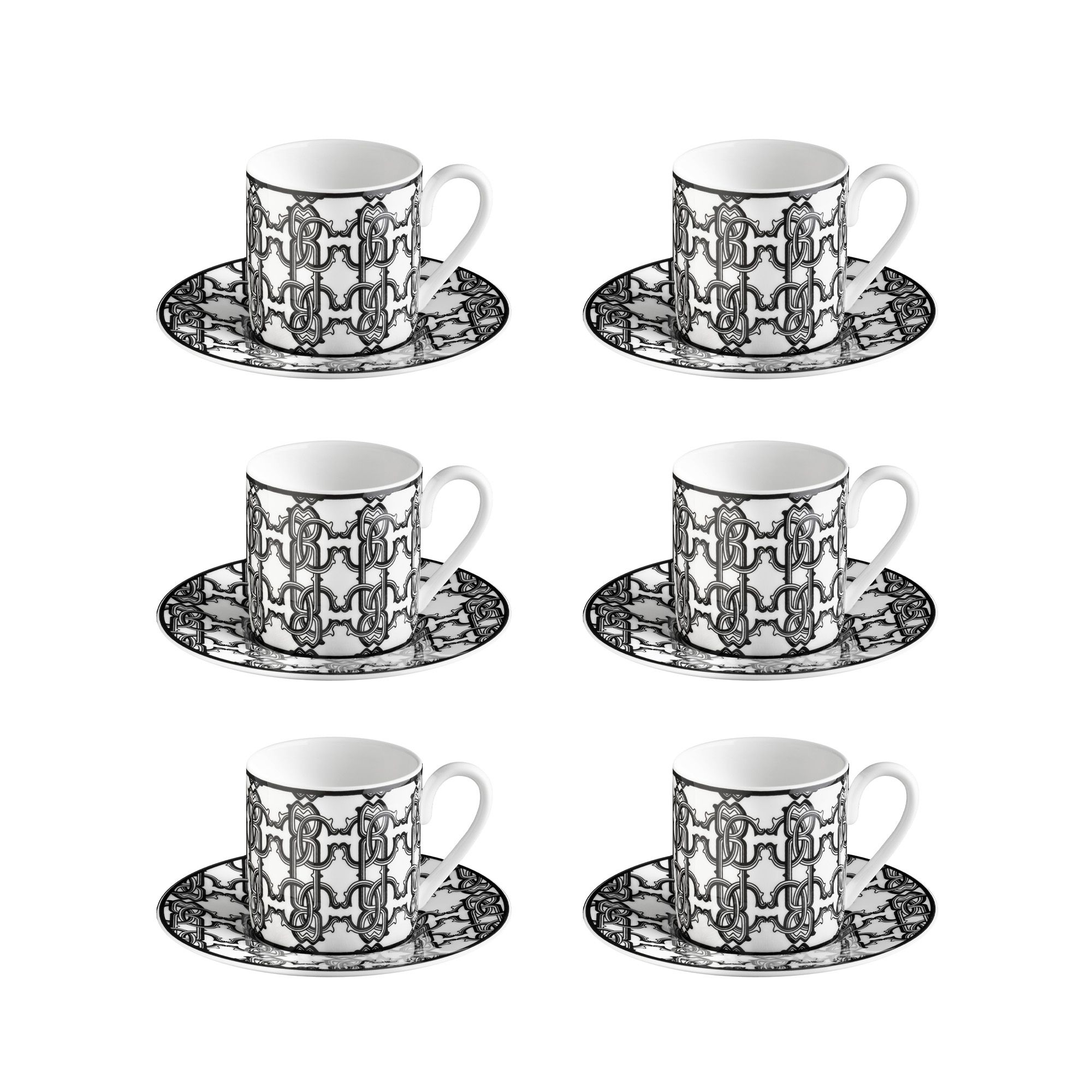 Roberto Cavalli Monogram Black Set of 6 coffee cups with saucer 10 cl