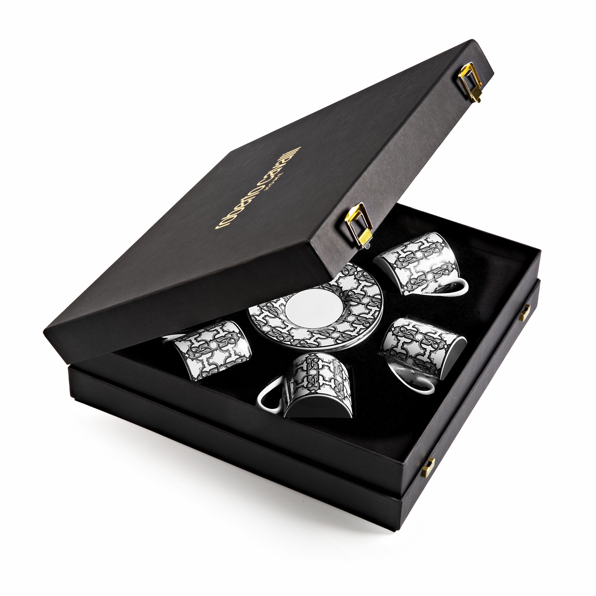 Roberto Cavalli Monogram Black Set of 6 coffee cups with saucers 10 cl - Luxury box