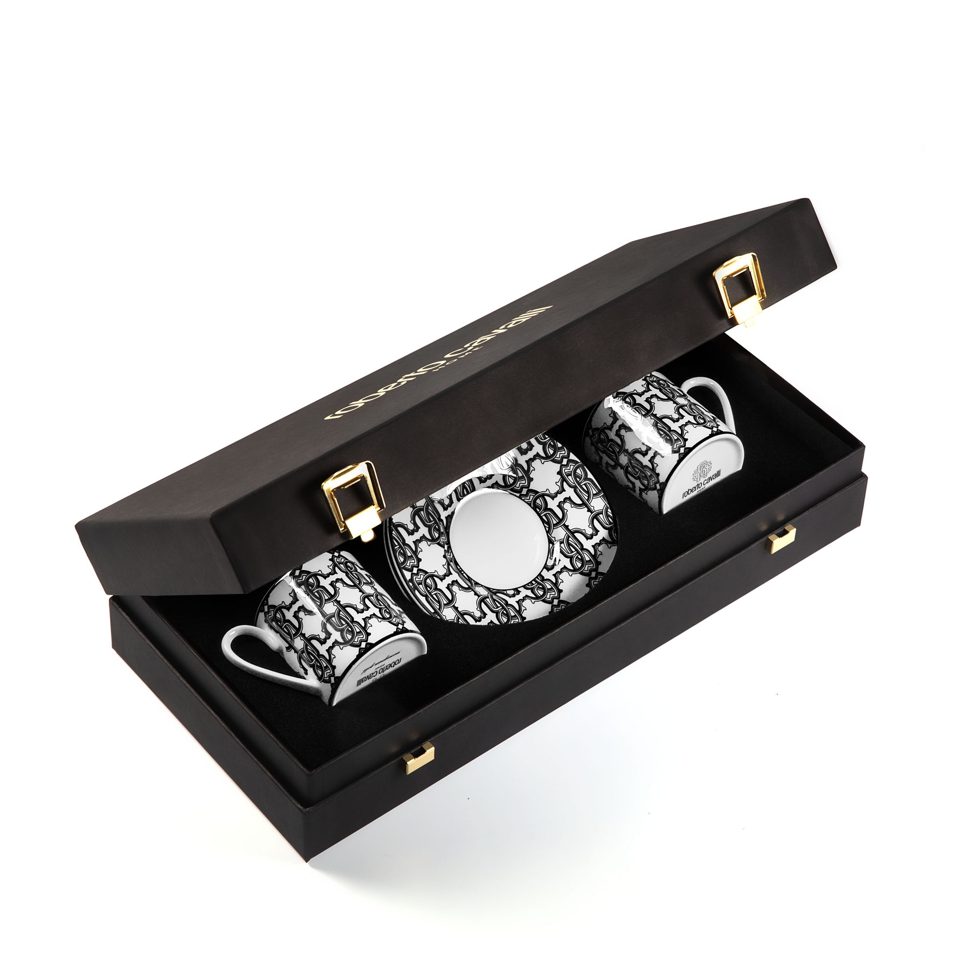 Roberto Cavalli Monogram Black Set of 2 coffee cups with saucer 10 cl - Luxury box