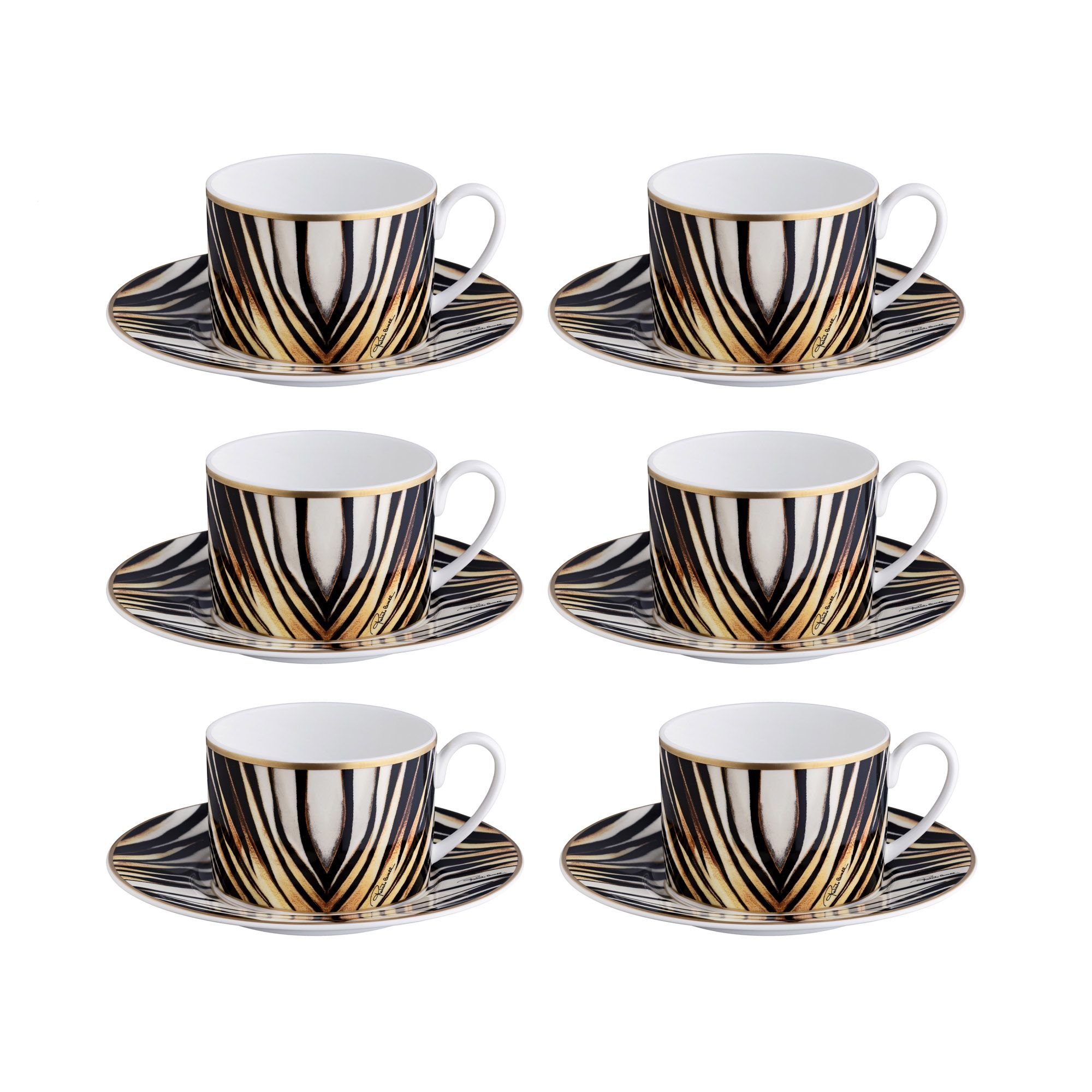Roberto Cavalli Ray Of Gold set of 6 tea cups with saucers 20 cl - Luxury box