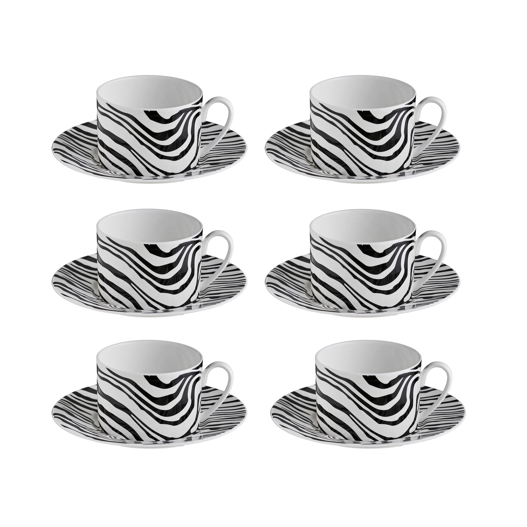 Roberto Cavalli Zebrage set of 6 tea cups with saucers 20 cl