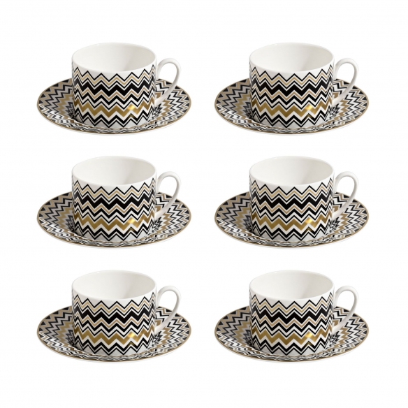 Missoni Zig Zag Gold Set of 6 Tea Cups with Saucers - Luxury box