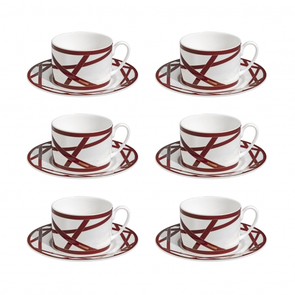 Missoni Nastri Bordeaux Set of 6 Tea Cups with Saucers
