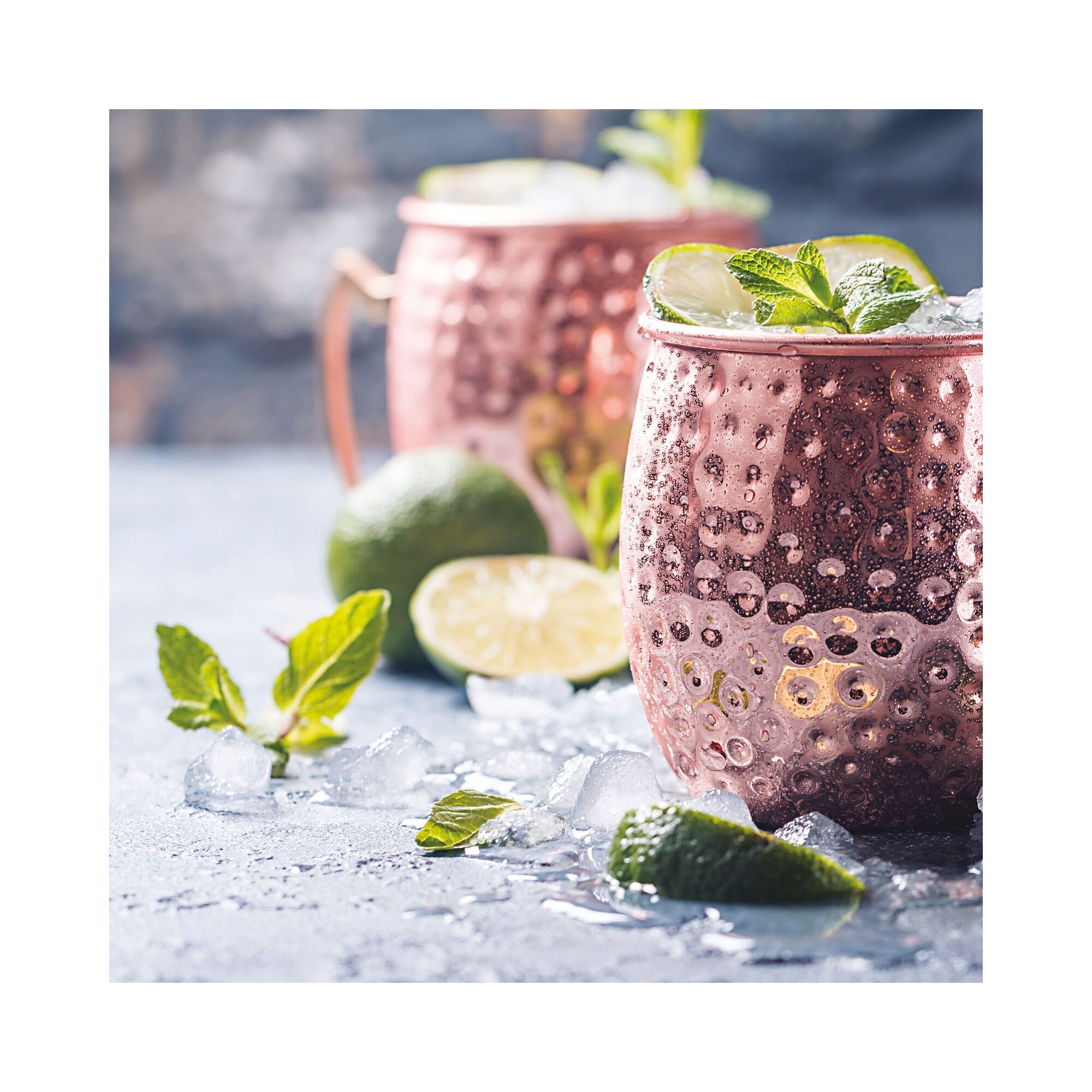 Moscow mule mug with a capacity of 50 cl made of stainless steel in Copper color. The mug has a comfortable handle and is the ideal accessory for serving Moscow mule or special cocktails based on vodka, tequila, whiskey, beer, rum, but you can also use it to sip a good iced tea or even a lemonade. Designed and made by Paderno.
