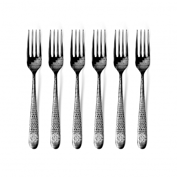 This Lizzard Steel set of 6 dessert forks is a beautiful work of art created by Roberto Cavalli in steel; these are cutlery pieces adorned with a fashionable, pure, and graphical reinterpretation of the lizard skin texture while maintaining the rigor of the materials used. This design not only adds a touch of exotic elegance but also offers a pleasing tactile experience, as the textured surface is delightful to the touch. Furthermore, these forks can be matched with any table style, whether it's modern, minimalist, or classic. Designed for lovers of fine dining and the art of table setting, the forks boast elegant dimensions, balanced weight, and proportions that make them pleasant to hold and use. Purchasing this beautiful product means opting for a combination of functionality, elegant aesthetics, and innovation. What are you waiting for? Click here on Newpop.it!