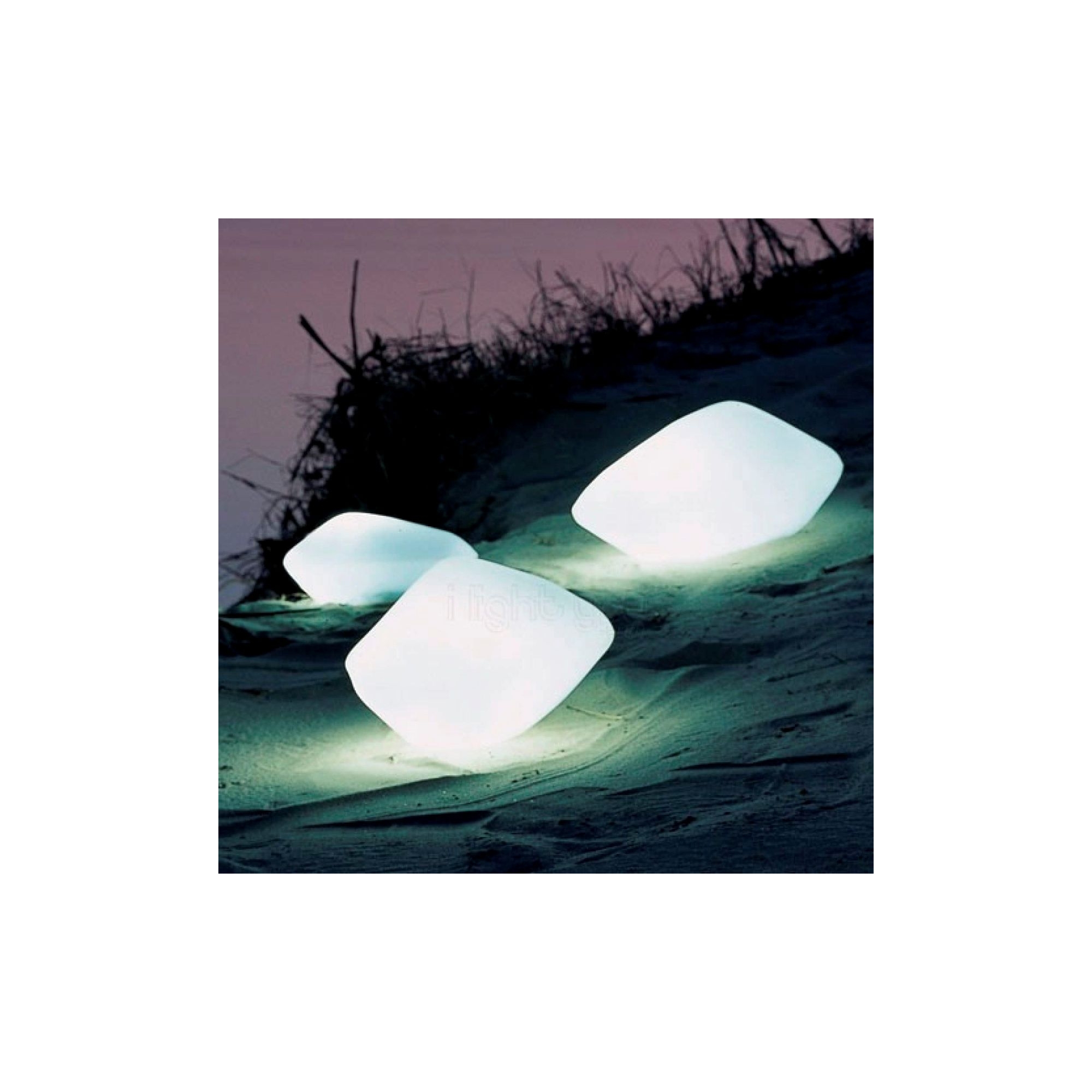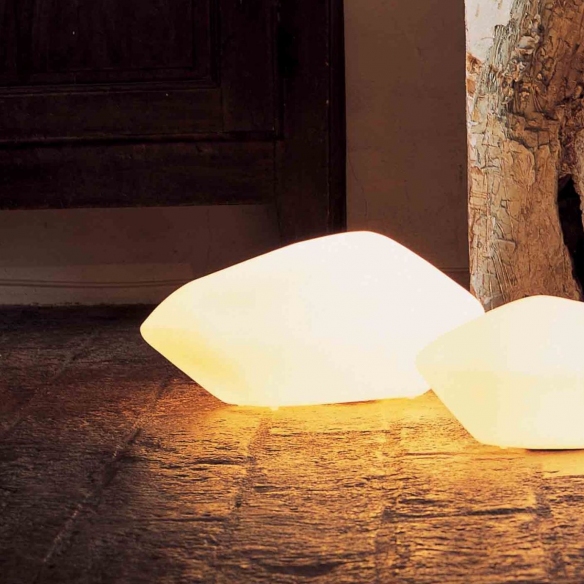 Stone 208 white polyethylene floor lamp, providing diffused light. A unique lamp, ideal for both indoor and outdoor use. Designed by Marta Laudani & Marco Romanelli for Oluce