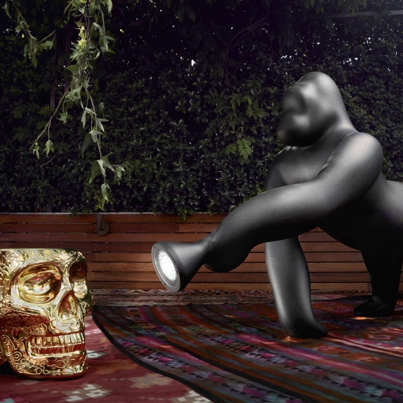 The Kong floor lamp is a remarkable sculpture created by Qeeboo, entirely made of recyclable polyethylene, a material ensuring durability, longevity, and versatility. This Kong lamp is available in 4 beautiful colors, and its design is inspired by the iconic 1933 film King Kong and its fierce protagonist who, in this lamp, is portrayed as a charming domestic hero, ready to light up even the darkest corners of the house. Whether placed in a living room or a bedroom, the Kong lamp will capture the gaze of your guests, becoming a topic of conversation and admiration. The Kong lamp features integrated 13-18W LEDs, offering efficient and long-lasting illumination and demonstrating the company's commitment to sustainable, low-energy solutions. Kong is the perfect example of how Qeeboo's dedication and attention are always focused on creating furnishing products that embody creativity and functionality. Designed by Stefano Giovannoni for Qeeboo.