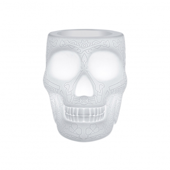 The Mexico rechargeable indoor vase is a fantastic decor piece crafted by Qeeboo, made entirely from recyclable polyethylene that ensures durability, longevity, and ease of maintenance. The Mexico indoor vase boasts a whimsical design reminiscent of the traditional painted skulls of Mexico, a playful nod to the cycle of our existence on Earth, meant to exorcize death and celebrate life, making it perfect for seamless integration into any setting, especially avant-garde design spaces. Whether it's placed in a minimalist-style living room or a modern-style entryway, the Mexico vase will become the subject of conversations among friends and relatives, always capturing the attention of your guests. Furthermore, the Mexico vase is versatile in nature: it can be used as a flower or plant vase, a unique and unmatched furnishing piece that will enrich any room, or even as a lamp that emits a soft and intimate light. This rechargeable indoor vase is the ideal choice for those who want to purchase a product that is the epitome of creativity and design. Designed by Studio Job for Qeeboo.