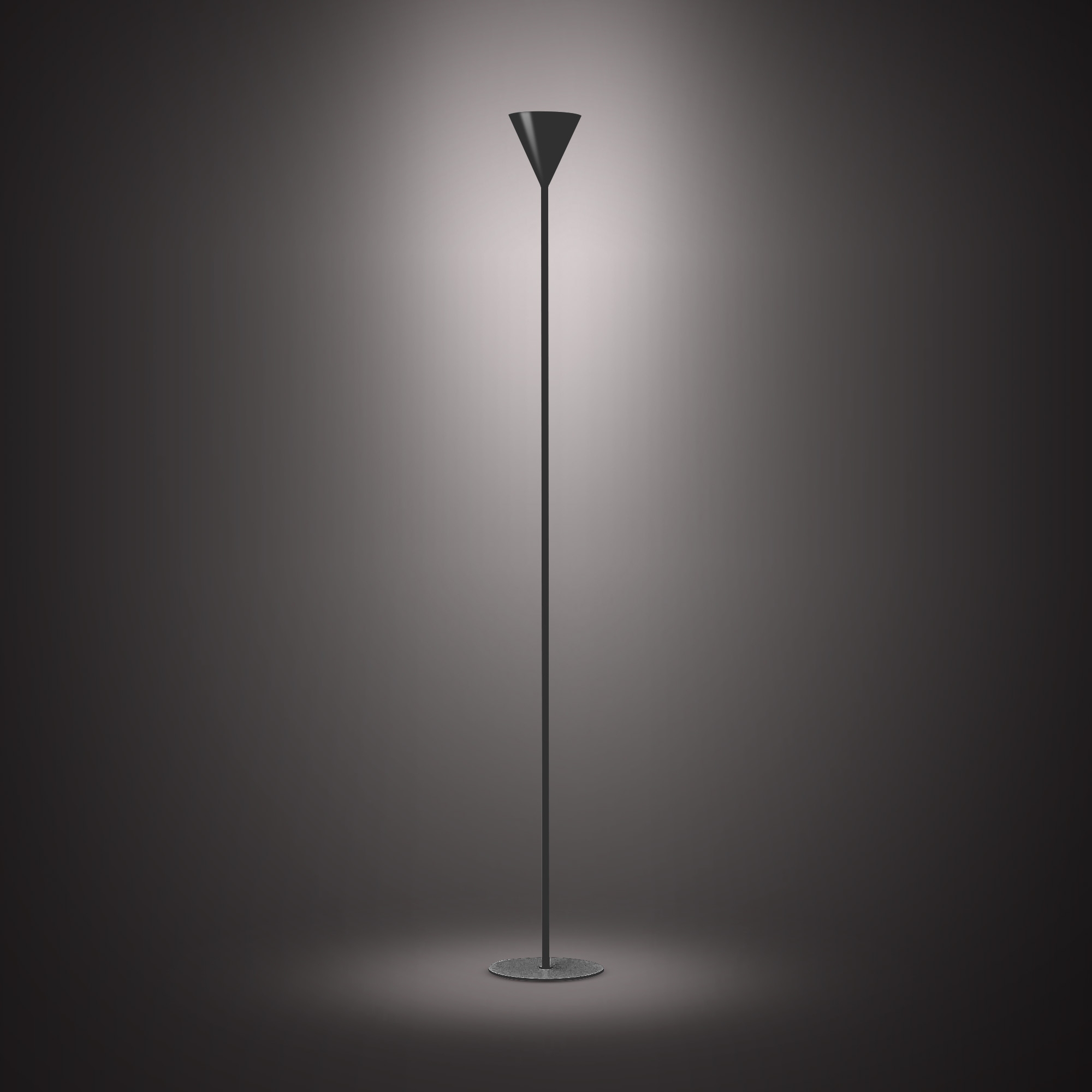 Cono floor lamp made of steel and aluminium. Available in 3 color finishes and 2 sizes, the Cono floor lamp is a lamp with an elegant and minimalist design, characterized by an imposing cone as a diffuser. The light can be adjusted based on the height at which the lamp is placed, creating different light effects suitable for every environment. Cono is a floor lamp that furnishes every space with style and personality, thanks to its imposing size and its simple and refined shape. Designed by Carlo Guglielmi for Firmamento Milano.