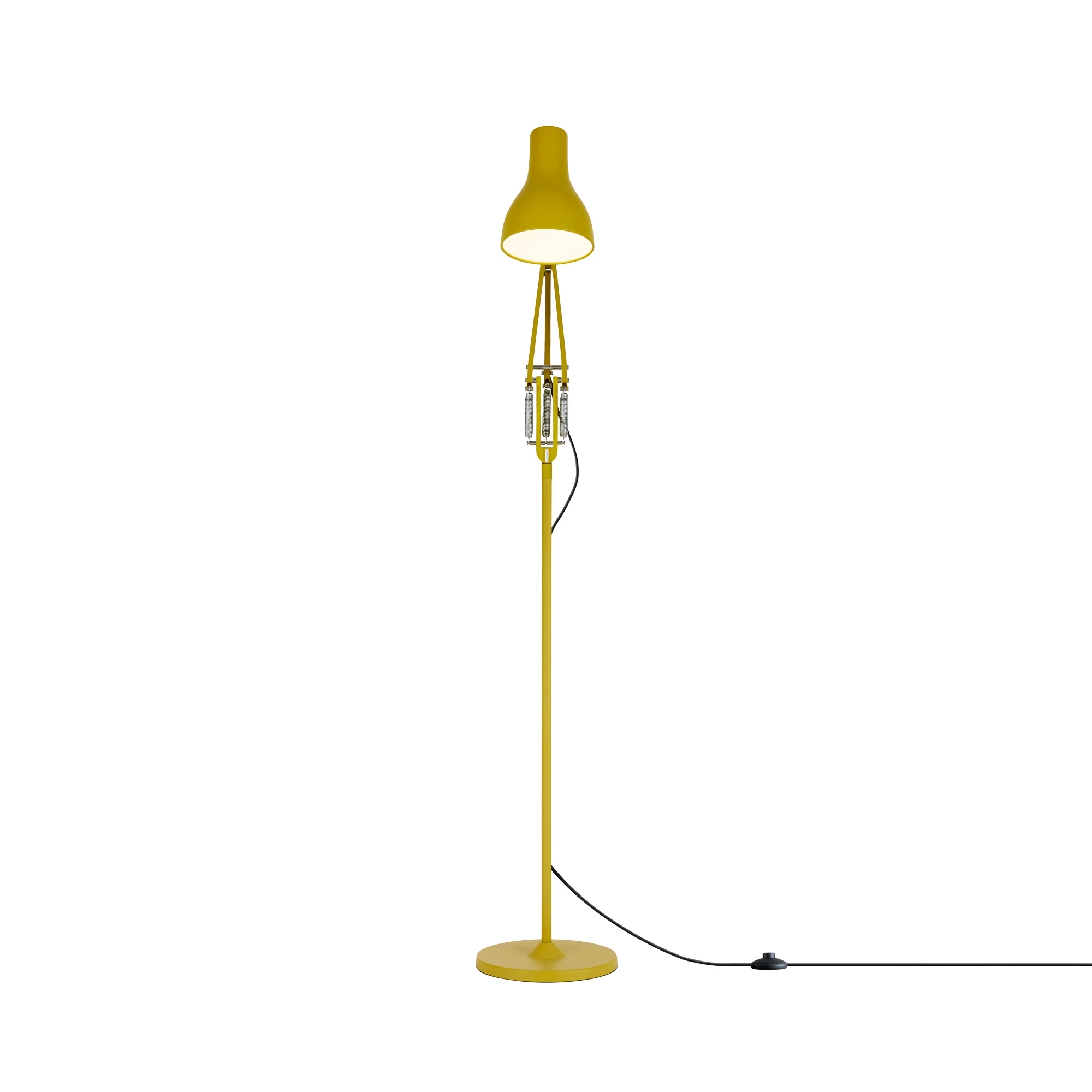 Materials: Matt paint finish, Aluminum shade and arms, Inline foot switch, Chrome plated fittings, Cast iron base with aluminum cover, Anglepoise constant tension spring technology