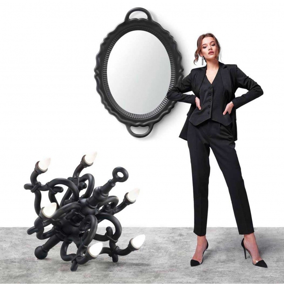 The Chandelier M is a floor lamp, produced by Qeeboo entirely in fiberglass, a material celebrated for its outstanding resistance to weather conditions and flexibility, making it ideal for outdoor as well as indoor usage. This M-sized lamp is available in three stylish combinations, and its design is inspired by the classic Thonet curves of the 19th century. It is an outsized object that spans across time to become the ultimate protagonist wherever it resides, seamlessly fitting into any style and environment, from a traditional living room to a modernly designed bedroom. Moreover, each of its arms houses LED lights, surrounded by ornate baroque-style elements that exceptionally refract light, creating a warm glow and a cozy atmosphere. The Chandelier M lamp is a delightful piece of elegant and sophisticated design, yet at the same time, it is a product of functionality and innovation. Designed by Studio Job for Qeeboo.