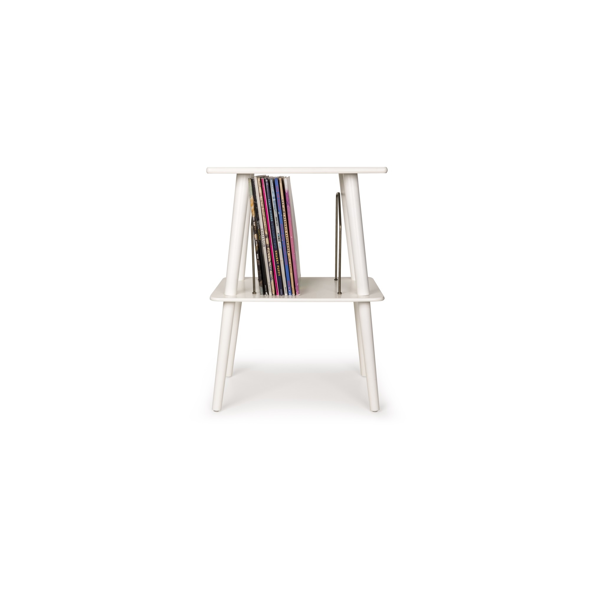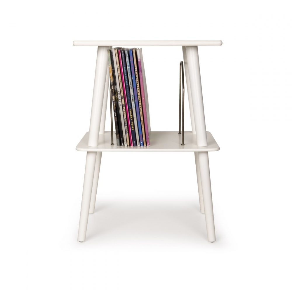Much more than a piece of furniture. This table will look after your favorite record players and vinyls. Available in wood and lacquered white variants. Dimensions: Width 46 cm, Depth 37 cm, Height 65 cm Material: Wood
