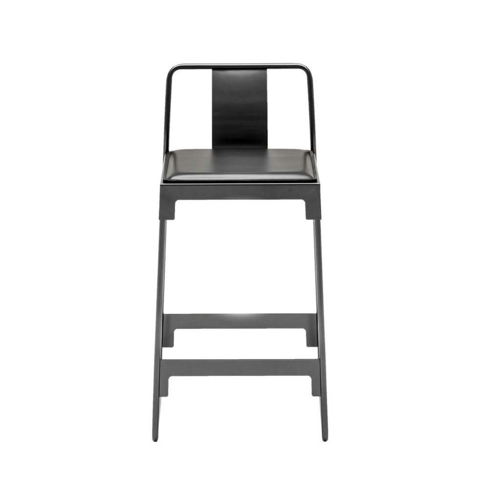 Mingx low stool with backrest made with structure in tube and powder-coated pressed steel sheet. Available in 3 elegant color finishes, the Mingx stool has a very simple and linear design, focused on the quality of the materials and the liveliness of the colors. Perfectly suited to any domestic space, the Mingx stool will enrich your living area by offering you great functionality and uncommon style. Designed by Kostantin Grcic for Driade.