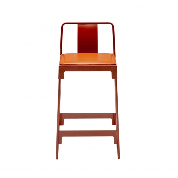 Mingx low stool with backrest made with structure in tube and powder-coated pressed steel sheet. Available in 3 elegant color finishes, the Mingx stool has a very simple and linear design, focused on the quality of the materials and the liveliness of the colors. Perfectly suited to any domestic space, the Mingx stool will enrich your living area by offering you great functionality and uncommon style. Designed by Kostantin Grcic for Driade.